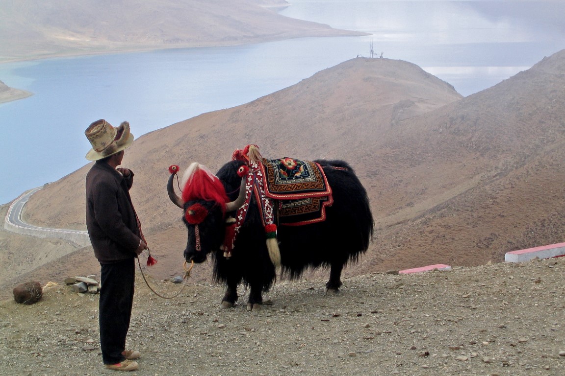 Vanochtend een grote omweg gemaakt naar een heilig meer. De omgeving was prachtig en al op de tussenstop onderweg hebben we heeeel veel foto's genomen. Er stonden natuurlijk enkele souvenirverkopers en ook iemand die een yak bijhad en dan ging bedelen bij de mensen die dat yak hadden gefotografeerd. Helaas was er tegelijk met ons ook een bus Chinese toeristen die overal voorliepen, dus geen al te beste foto's van het yak...
