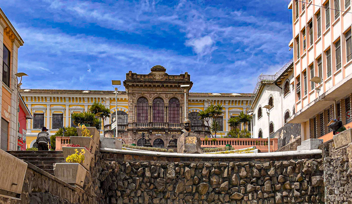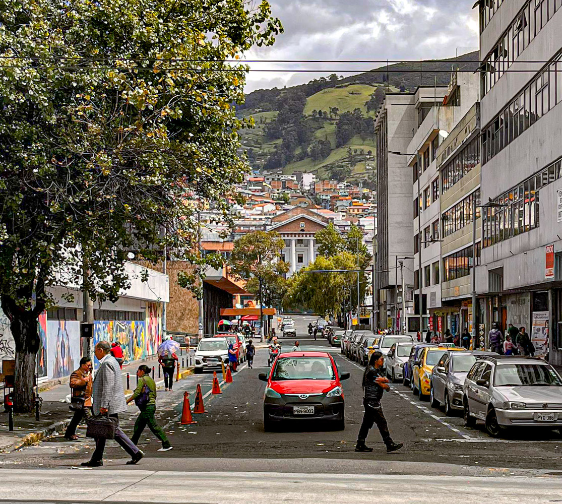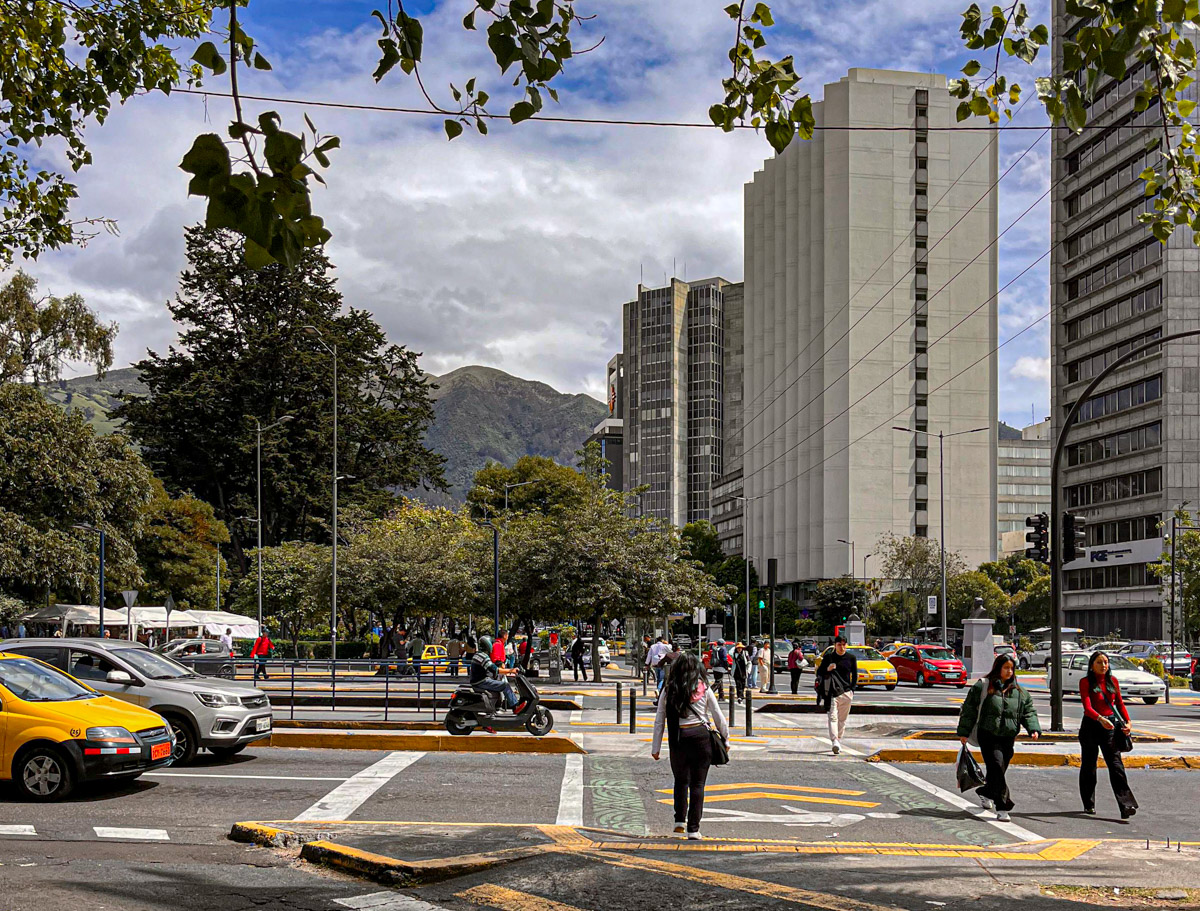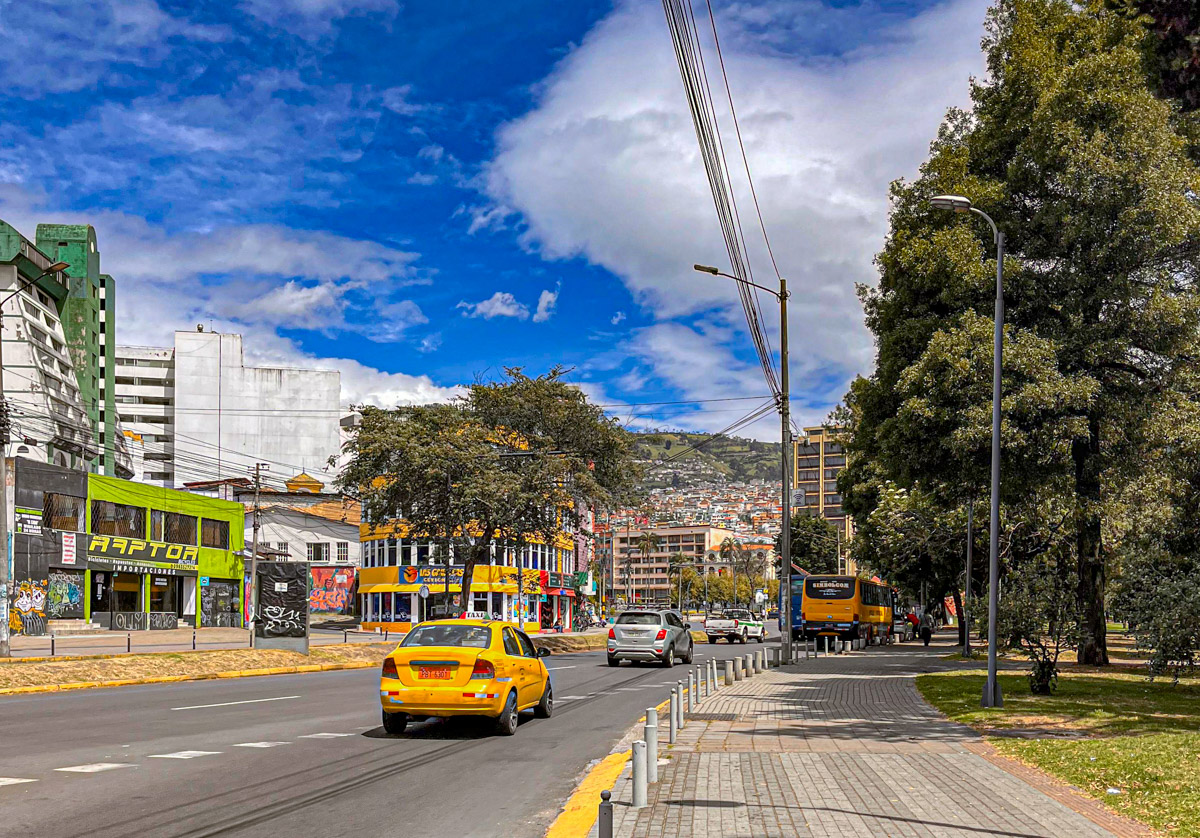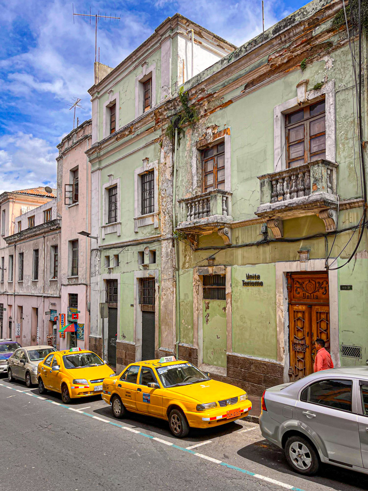 Als tweede op ons lijstje staat het historische centrum. We wandelen er naartoe maar het is verder dan gedacht. Onderweg is niet zo heel veel te zien en we proberen niet op te vallen, want het is bekend dat dit niet zo’n veilige wijk is. Uiteindelijk komen we bij het voetgangersgebied. Het wordt afgebakend door alweer zwaarbewapende politieagenten en een sliert gele taxi’s. We zijn moe, want de hoogte begint een rol te spelen. After all is dit de hoogstgelegen hoofdstad ter wereld.