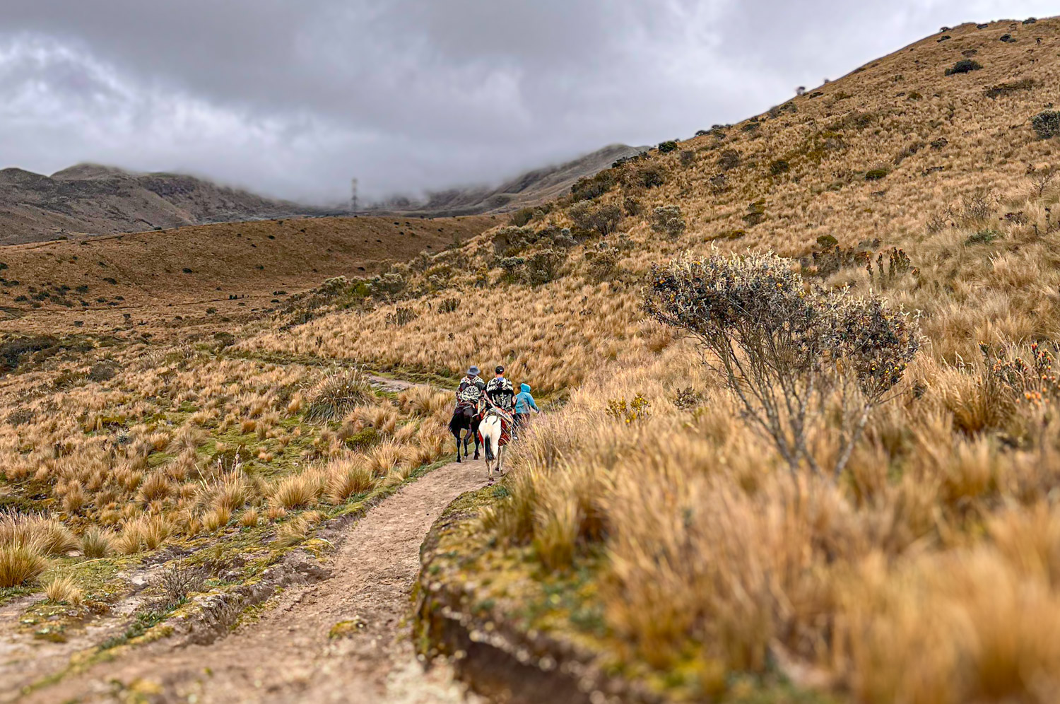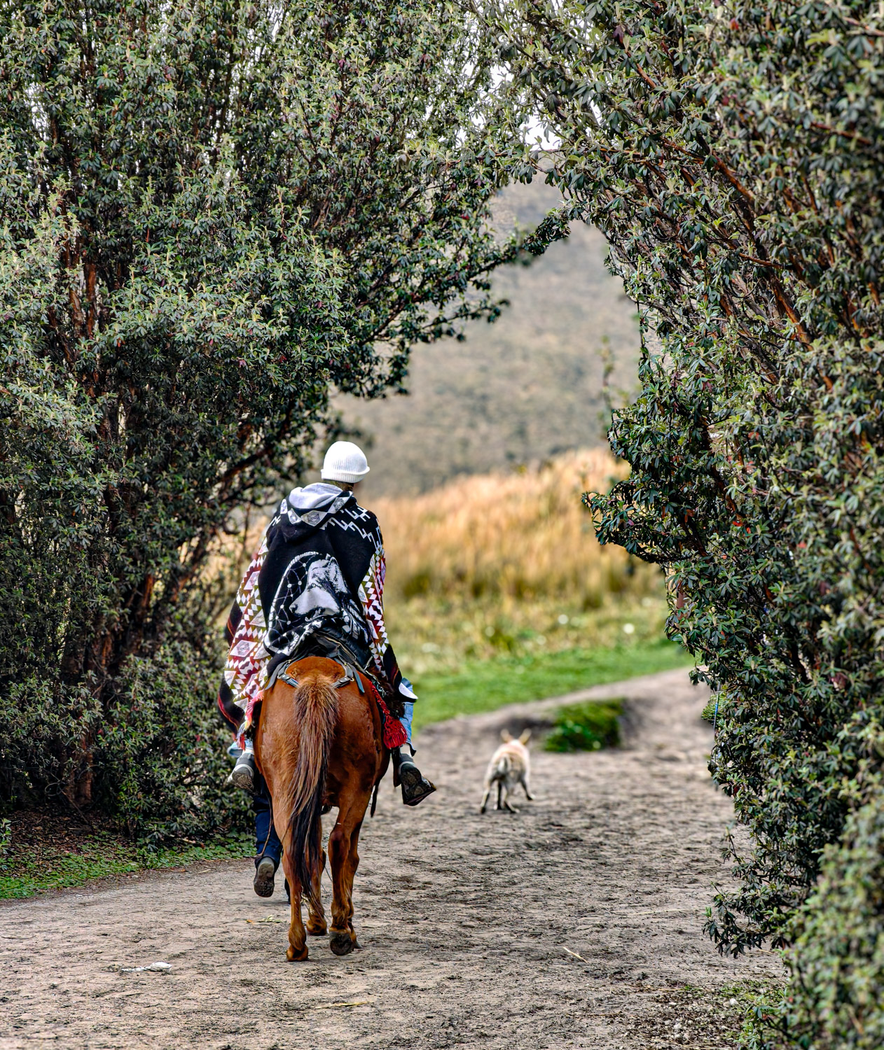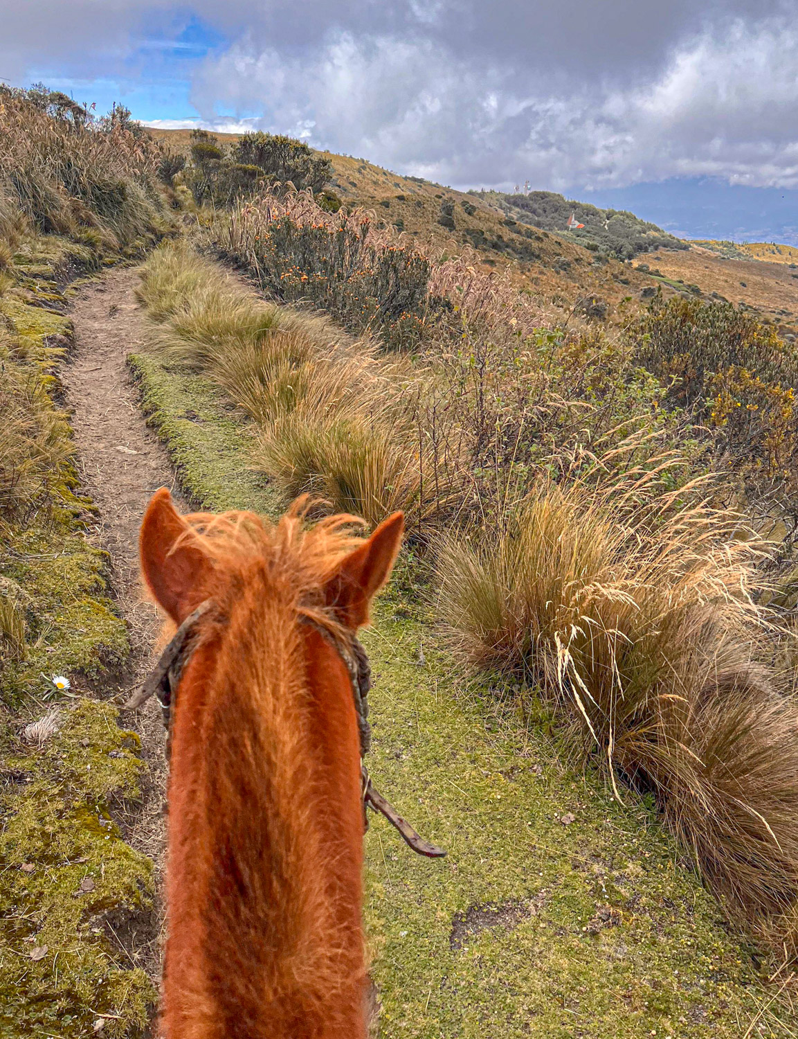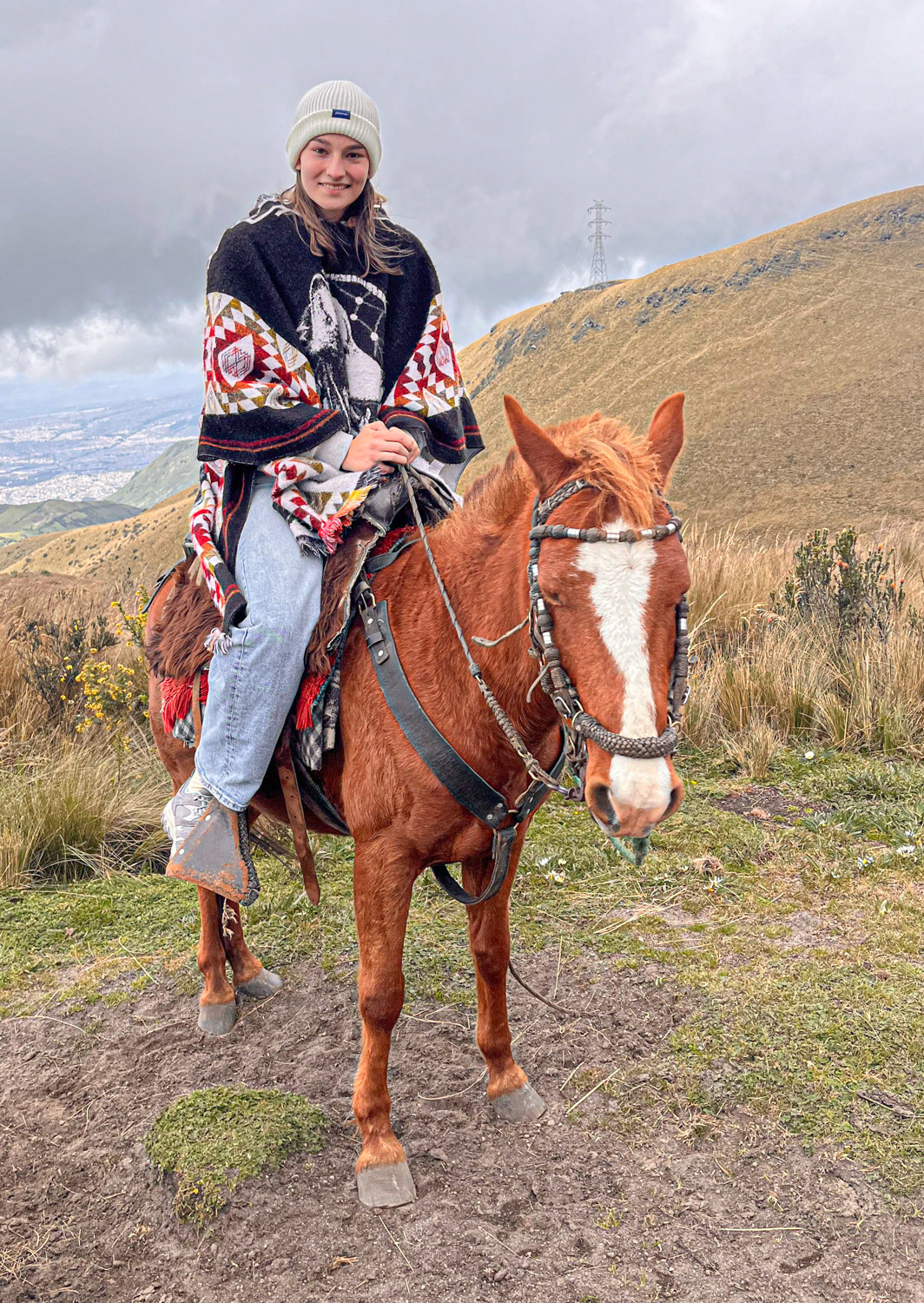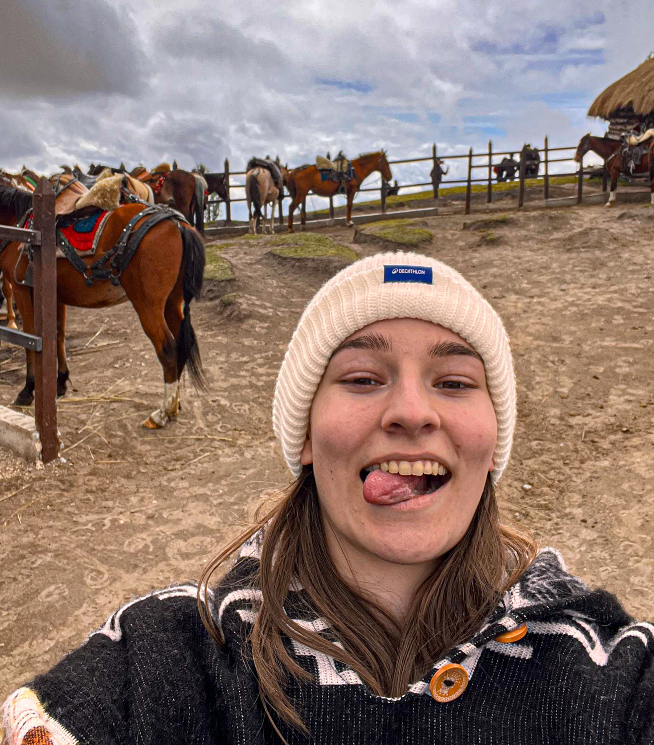 Wat verderop zijn paarden. Voor een paar dollar krijg je een poncho en mag je een ritje maken. Julia ziet het als een once in a lifetime experience en gaat ervoor. Wie kan er zeggen dat ze bovenop een vulkaan hebben paardgereden ? Ondertussen gaan mams en paps een koffietje drinken. De cafetaria heeft een vloer van aangestampte aarde en een hele bureaucratie. Eerst bestelling plaatsen en betalen, daarna krijg je een bonnetje. Je zet twee stappen naar links en kikt recht in de “keuken”. Een donker gat waar een onduidelijk aantal mensen aan het bekvechten zijn. Je geeft je bonnetje. Twee koffie ? Die worden met een pollepel uit een grote kom geschept. Melk ? Is er niet. We gaan op het “terras” zitten. Wat verder zit er nog een groep toeristen. We vermoeden Canadezen. Na een halfuurtje is Julia terug, een geweldige ervaring rijker. Ze werd namelijk helemaal alleen gelaten en had vrijheid te gaan waar ze wilde met het paard.