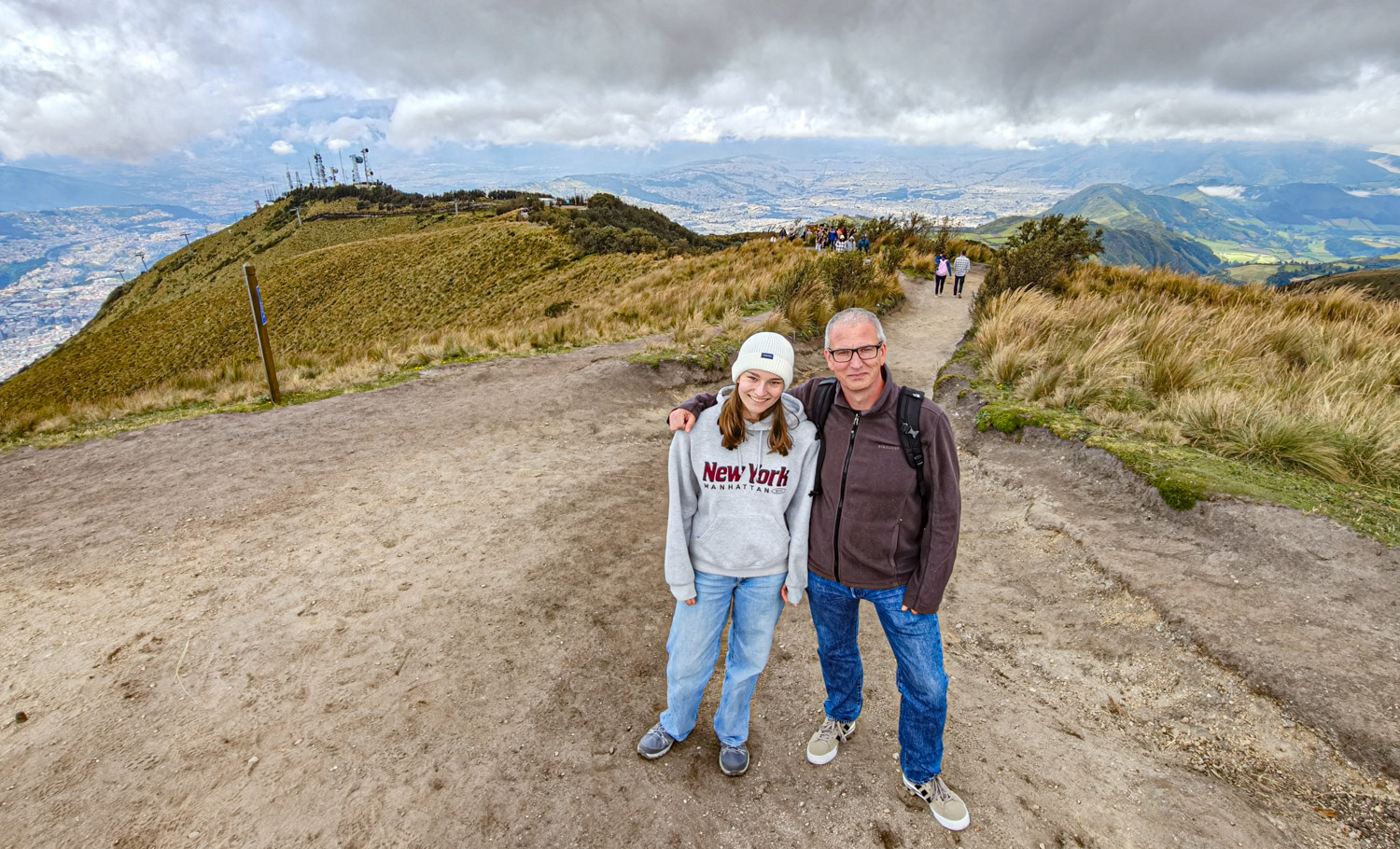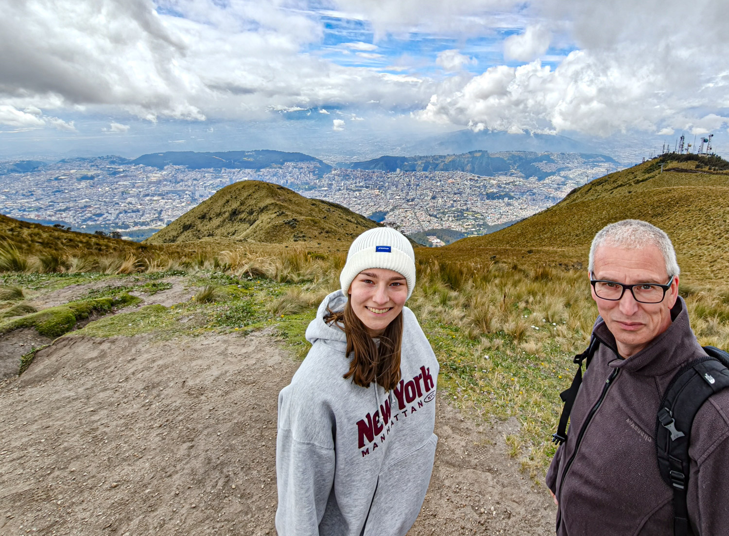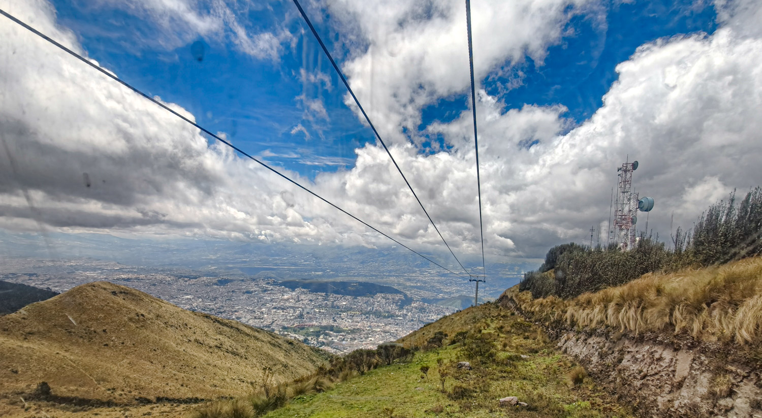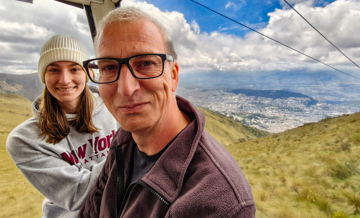 Dan is het weer tijd voor Ben om zijn hoogtevrees te bedwingen want we gaan weer naar beneden. In onze gondel zit een Canadees koppel met hun lokale gids. De gids vertelt vol enthousiasme hoe vorig jaar een reddingsoperatie werd opgezet nadat de gondels op grote hoogte waren stilgevallen. Nu zet men de teleferico stil bij de minste regenval, en dit soms urenlang.