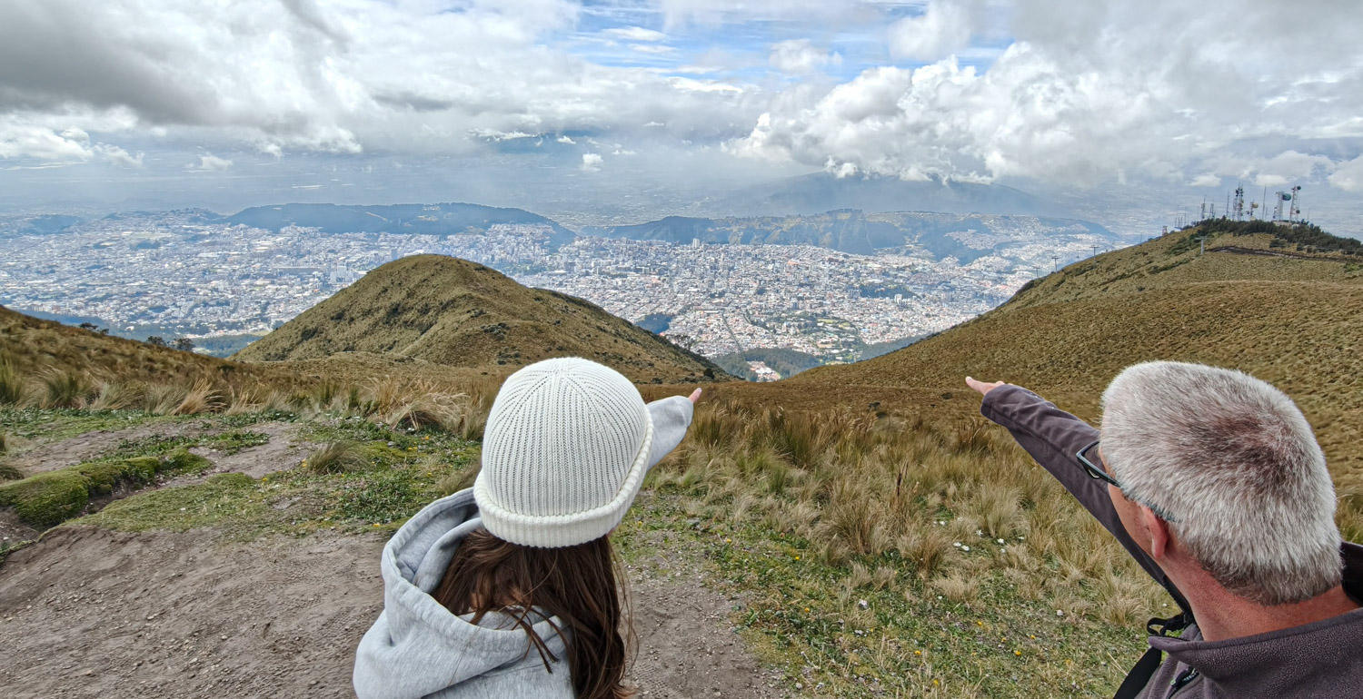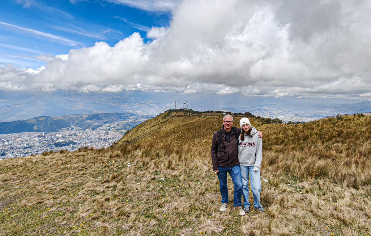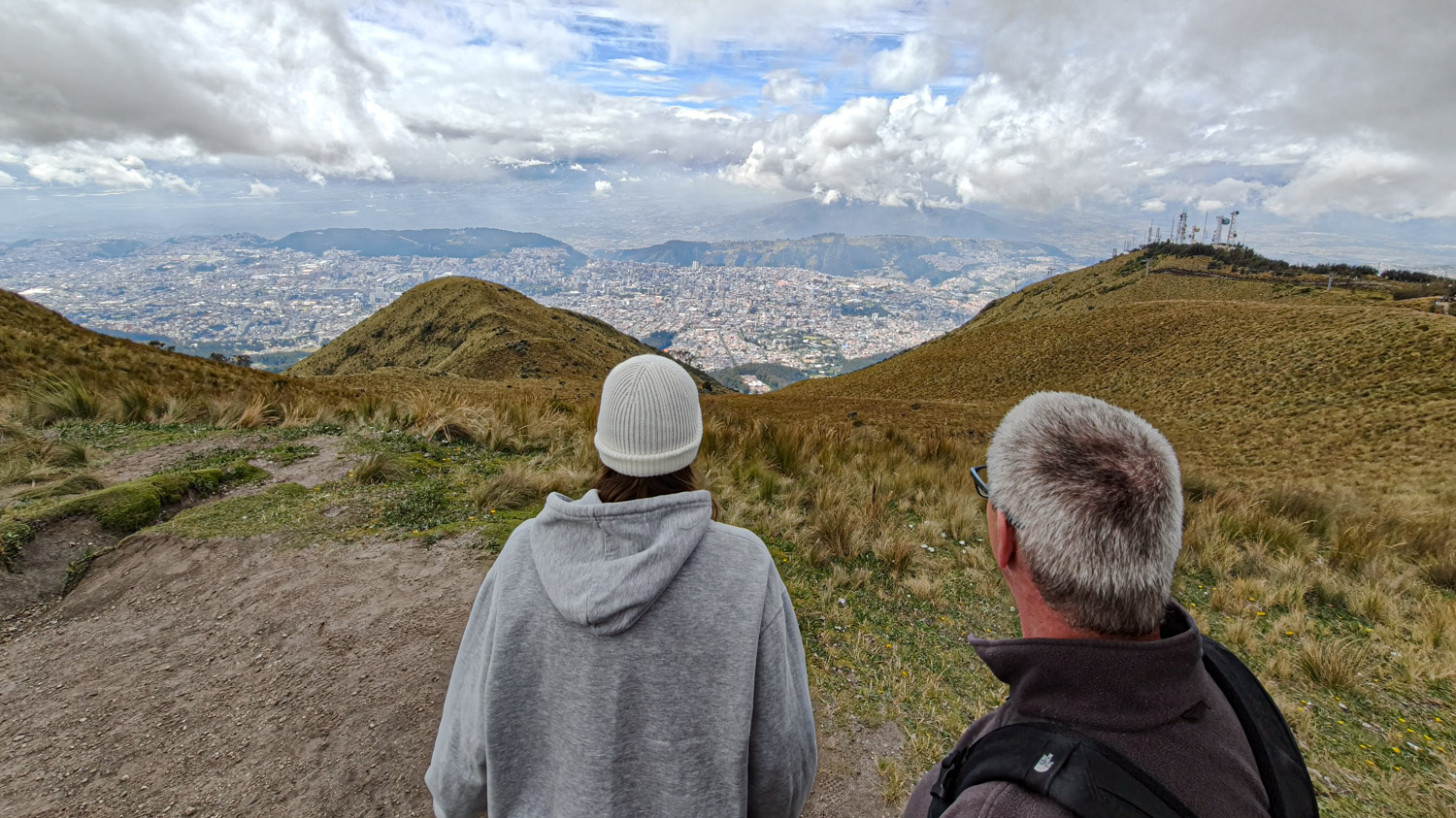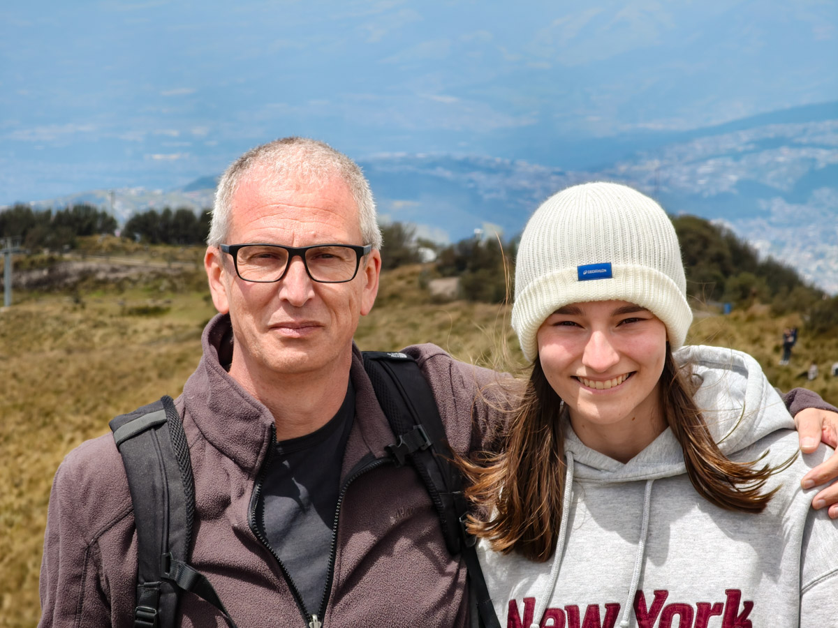 Dan is het weer tijd voor Ben om zijn hoogtevrees te bedwingen want we gaan weer naar beneden. In onze gondel zit een Canadees koppel met hun lokale gids. De gids vertelt vol enthousiasme hoe vorig jaar een reddingsoperatie werd opgezet nadat de gondels op grote hoogte waren stilgevallen. Nu zet men de teleferico stil bij de minste regenval, en dit soms urenlang.