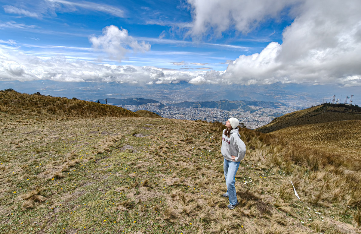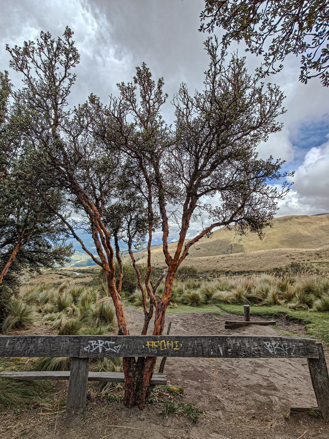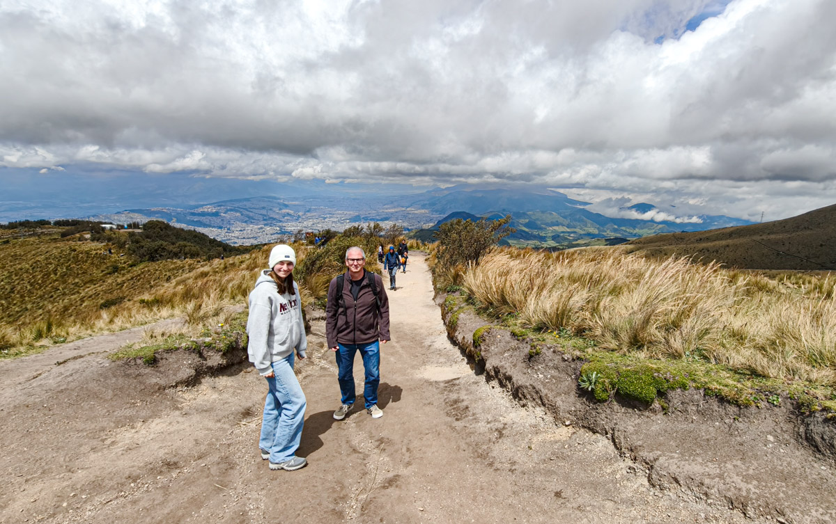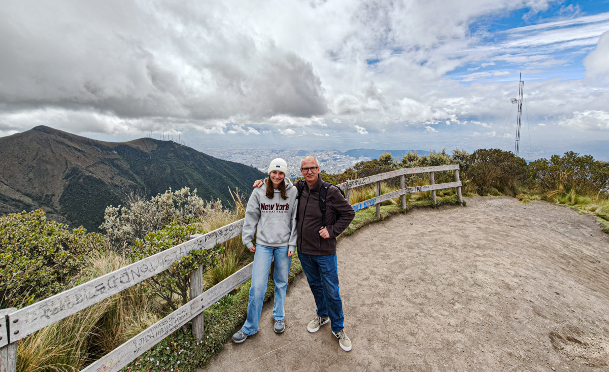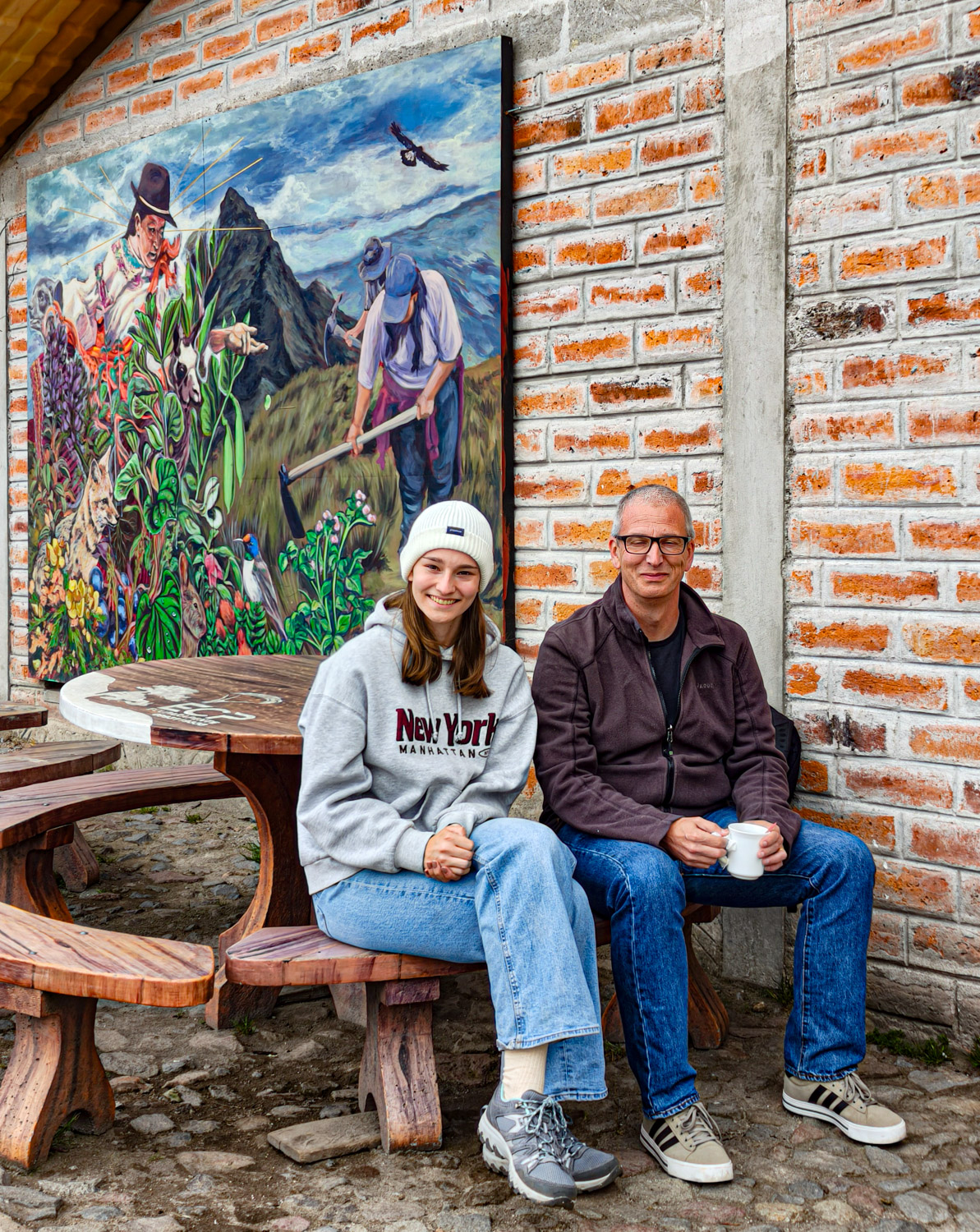 Dan is het weer tijd voor Ben om zijn hoogtevrees te bedwingen want we gaan weer naar beneden. In onze gondel zit een Canadees koppel met hun lokale gids. De gids vertelt vol enthousiasme hoe vorig jaar een reddingsoperatie werd opgezet nadat de gondels op grote hoogte waren stilgevallen. Nu zet men de teleferico stil bij de minste regenval, en dit soms urenlang.