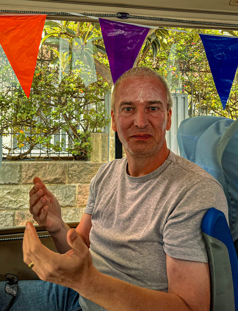 van Valentijn. De hele bus zingt uit volle borst mee en de jarige krijgt een
