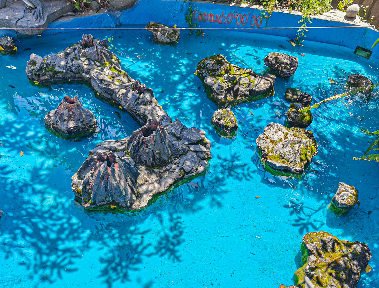 Het is een soort mini-pretpark waar de evenaar op de grond is getekend als