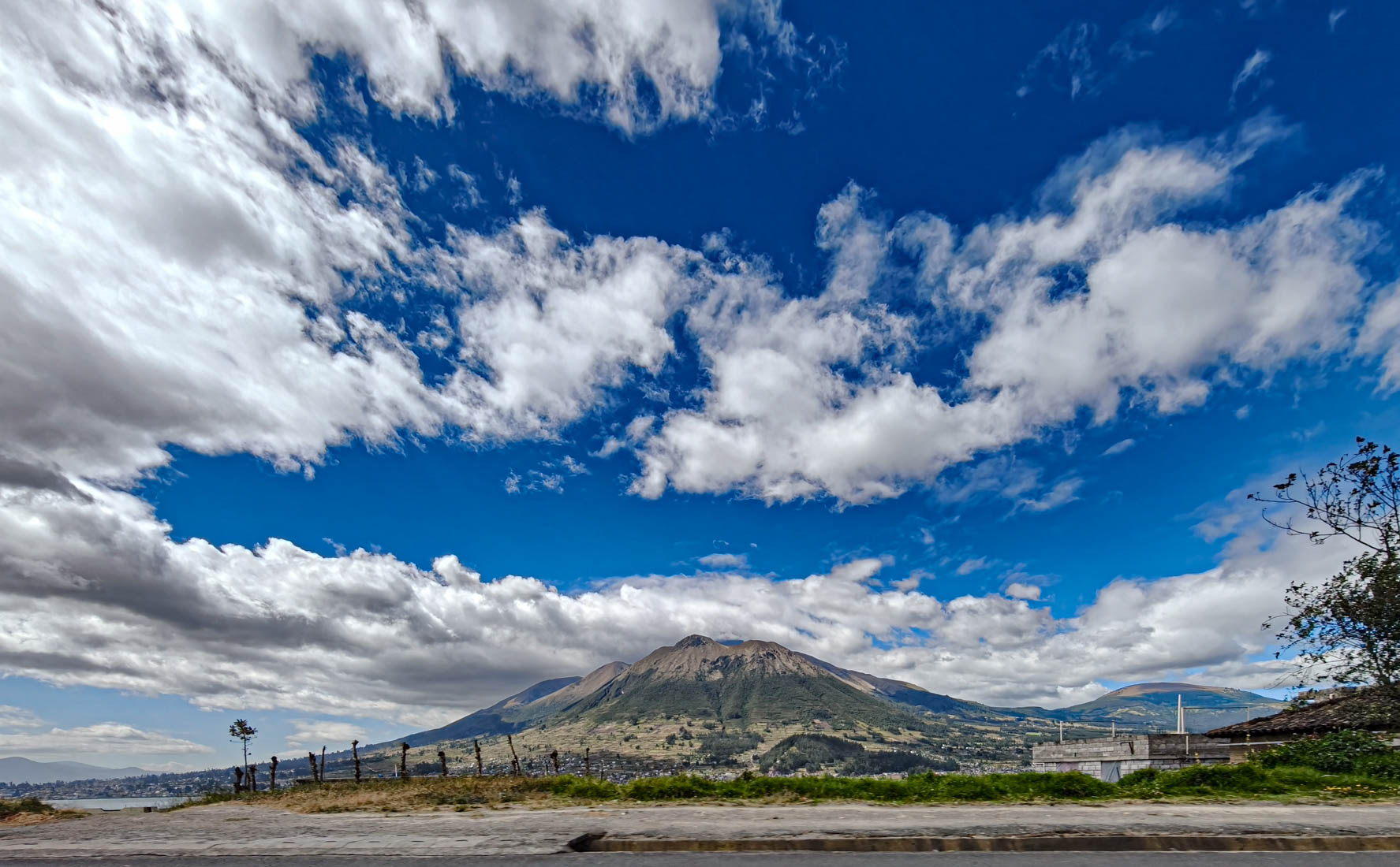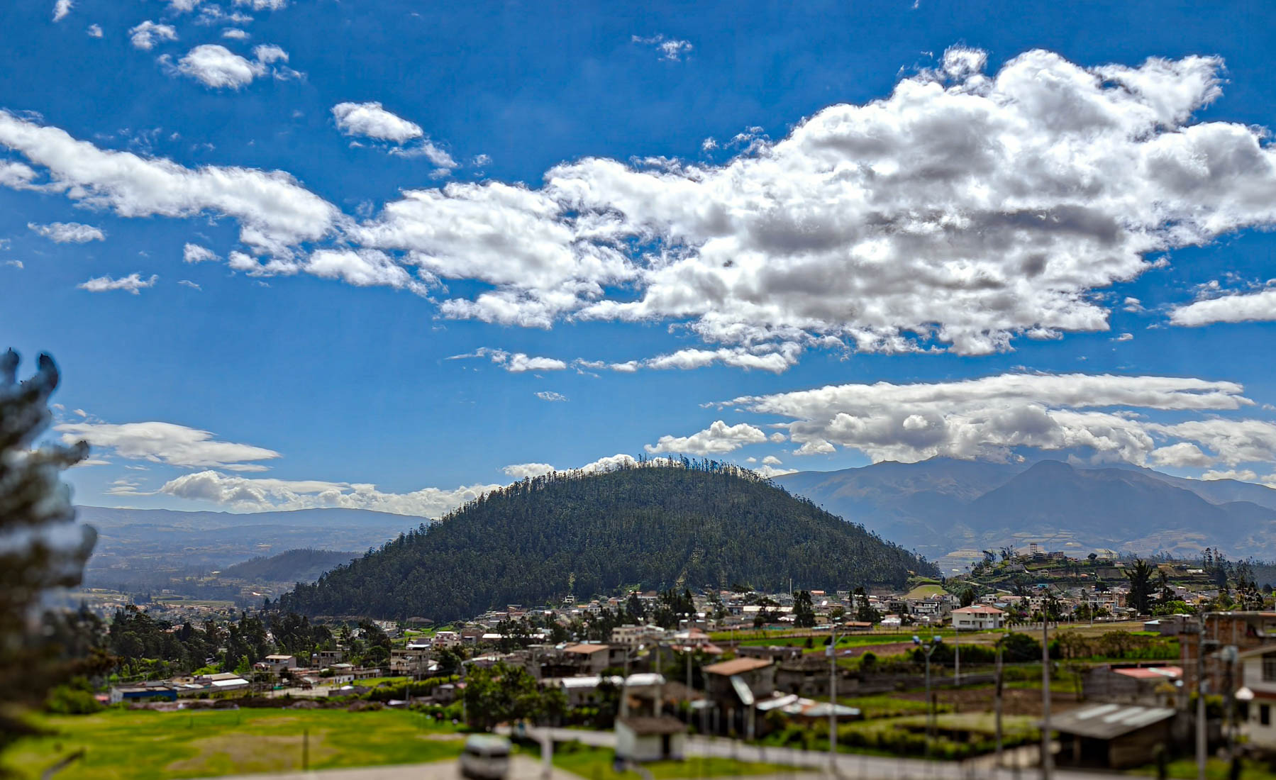 Vanuit het dorpje zien we al de Imbabura-vulkaan liggen. Prachtig wolkenvrij en ook sneeuwvrij.