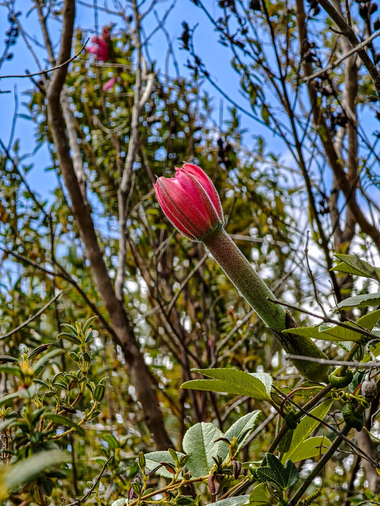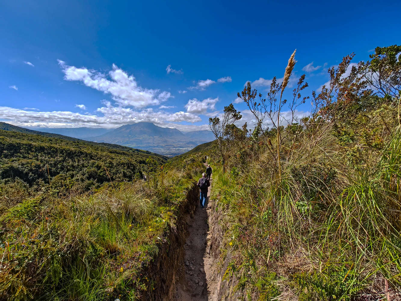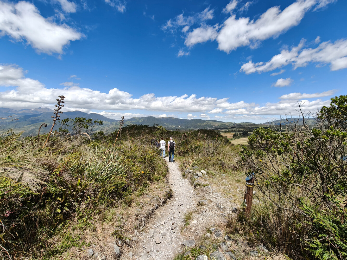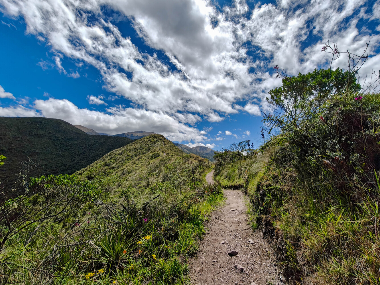 Onderweg merken we dat het weer onvoorspelbaar is op deze hoogte. Het wisselt tussen ijzige wind en meedogenloze zonnestralen. We merken allerlei onbekende planten en bloemen op. Een koppel beweert een condor te hebben gezien maar was niet snel genoeg om een foto te maken. Opmerkelijk, want condors komen hier bijna niet meer voor !