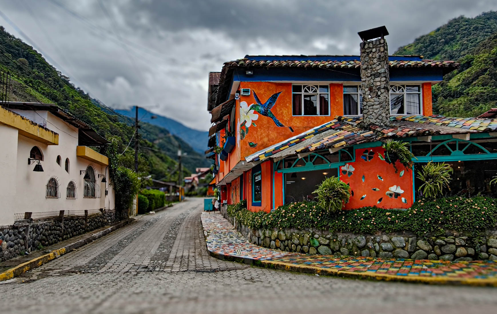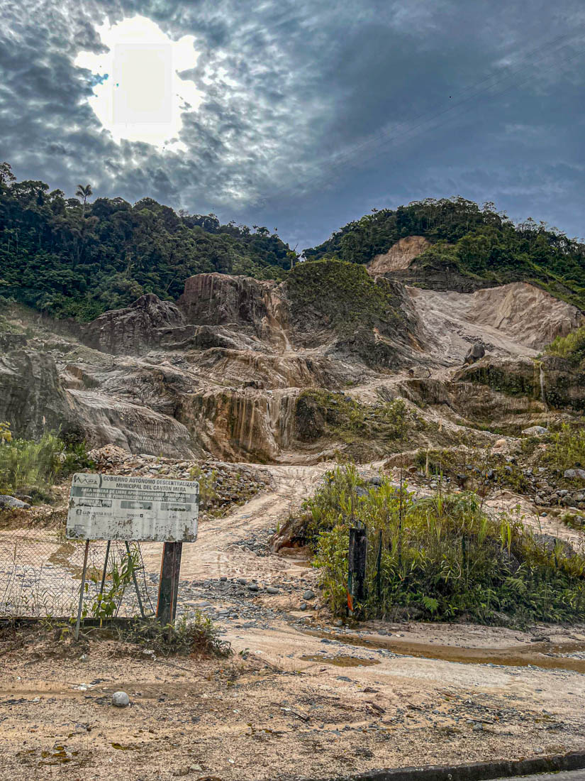 We rijden door het walhalla van de jeansbroeken, Pelileo, ook wel blue city genoemd. De stad is bijna kompleet verwoest door een aardbeving in 1949 maar werd weer opgebouwd. Meer dan 50 jaar later, in 2006, ontplofte de nabijgelegen vulkaan de Tungurahua en het stadje werd bedolven onder rotsblokken.