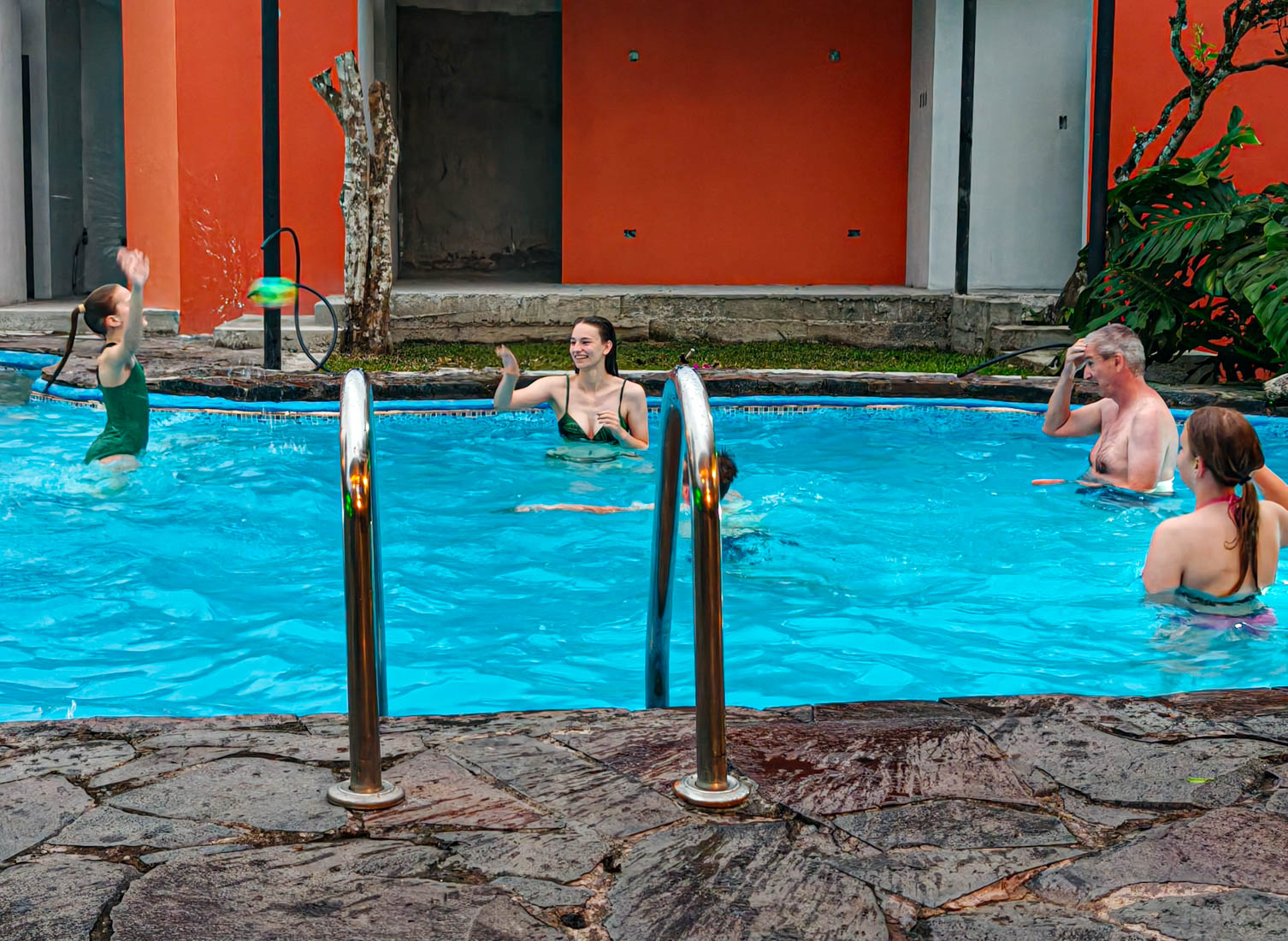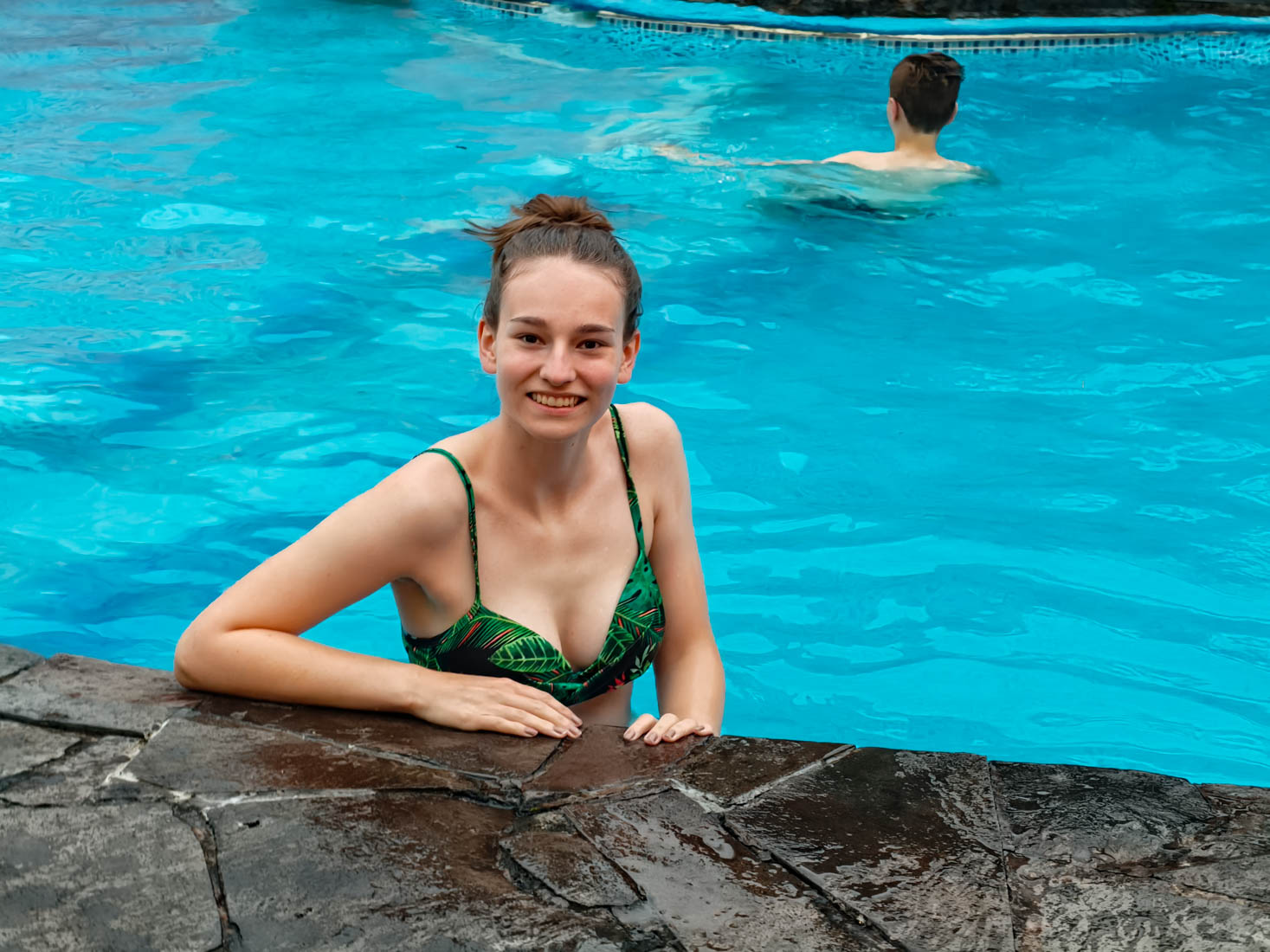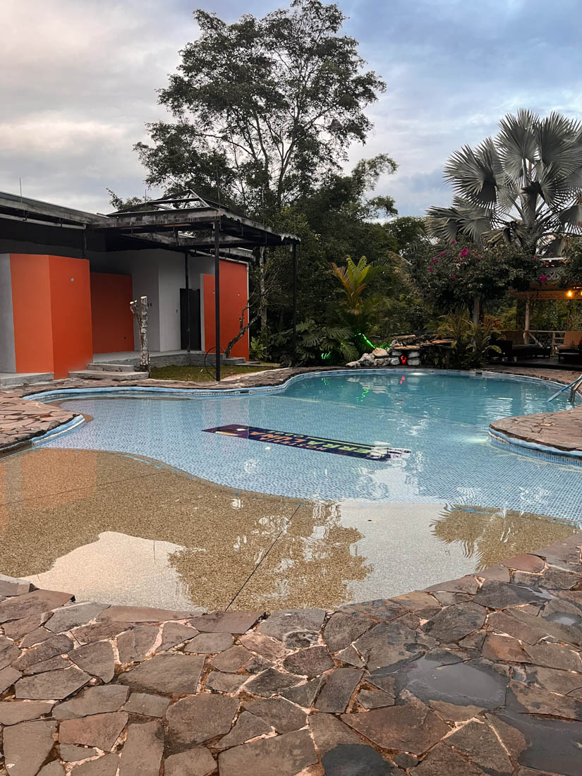 afdalen tot in Tena, waar ons een resort met zwembad wacht. Wachten is het