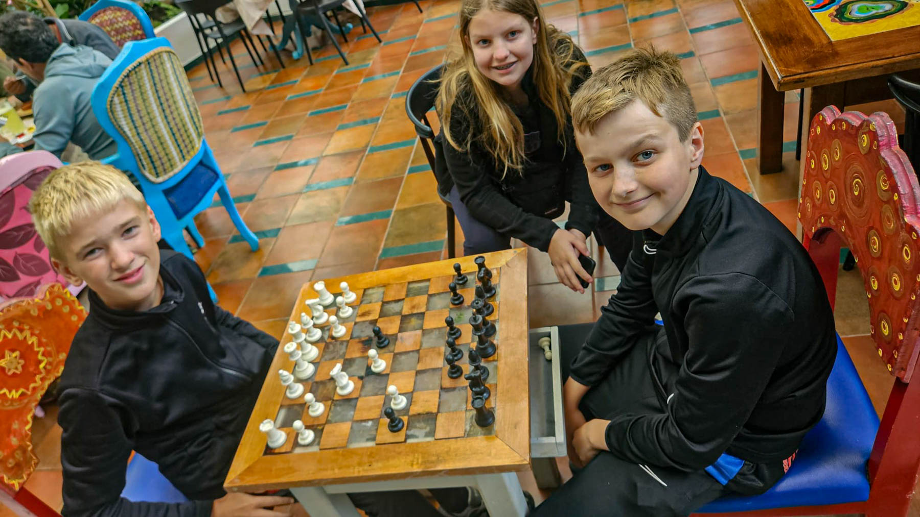De kinderen hebben zich uitstekend gedragen, de hele dag op de bus en kort