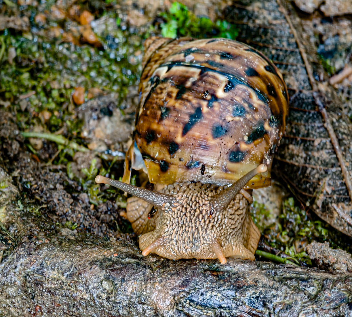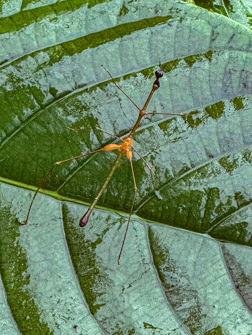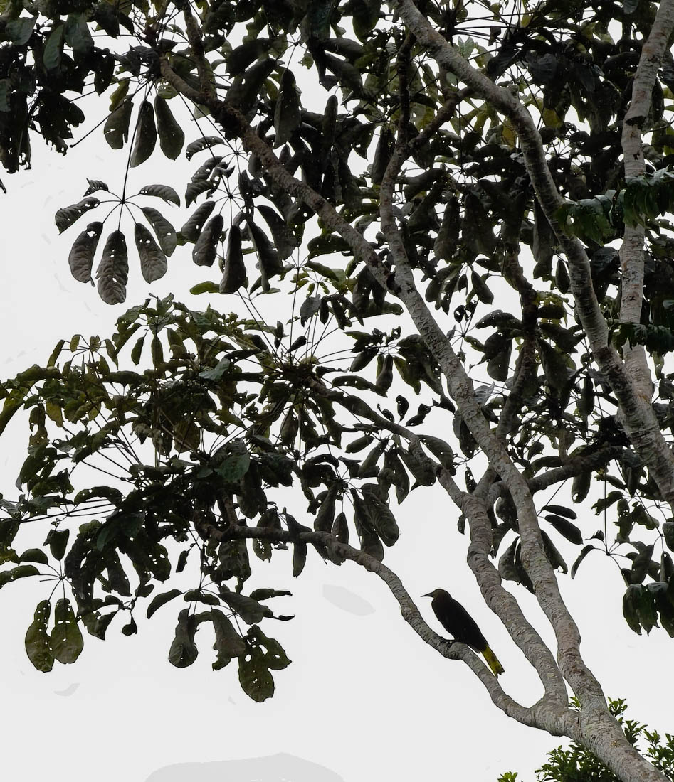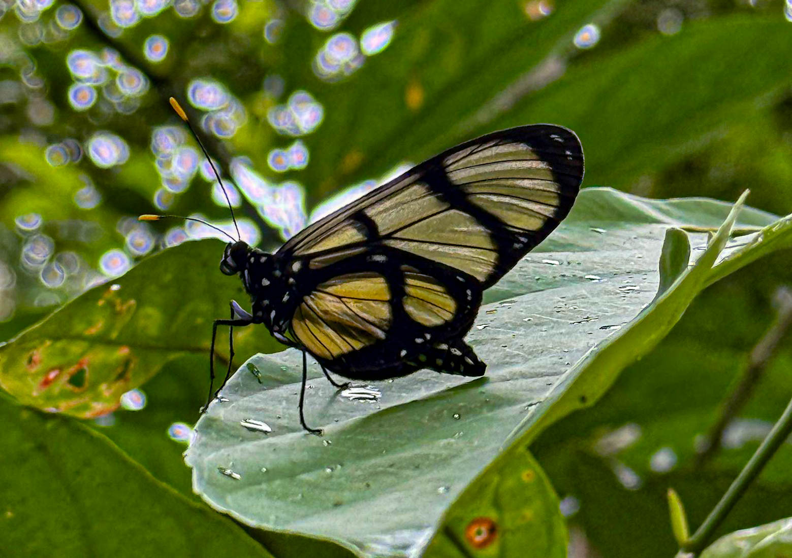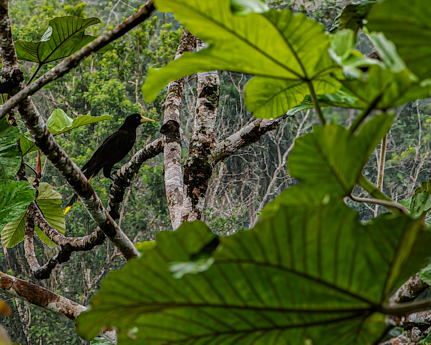 Achteraan de groep hakt Fausto er duchtig op los met zijn machete. We moeten allemaal ons uiterste best doen om niet uit te glijden in de modder of onze enkels te verzwikken op de gladde stenen. Als we door een riviertje moeten waden merk ik dat mijn laars eigenlijk lek is. We klimmen de rivieroever naar boven zonder eigenlijk goed om ons heen te kunnen kijken, wat wel jammer is. De chauffeur loopt achteraan en filmt alles met zijn smartphone. Hij heeft een groot blad van een plant omgekeerd op zijn hoofd gezet.