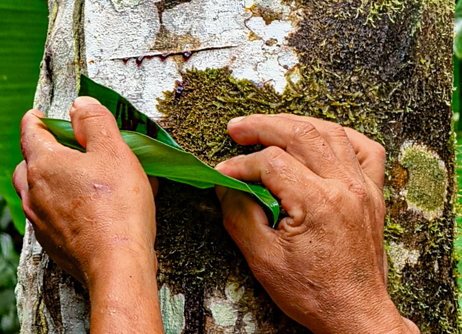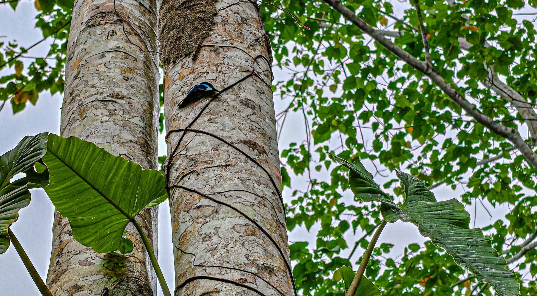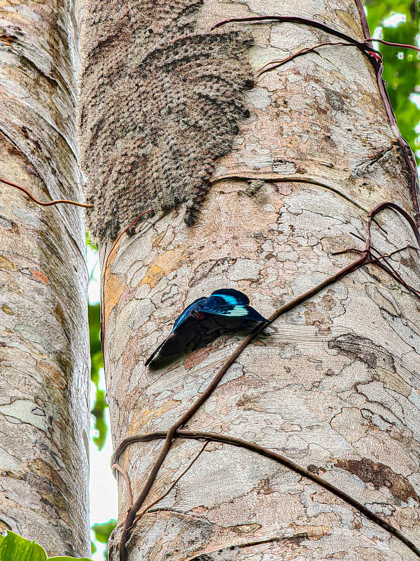 We stoppen bij een speciaal soort boom met een soort vervlochten wortels. Een stuk van de wortels wordt opengehakt en het krioelt er van de hele kleine citroenmieren. We mogen allemaal proeven en inderdaad : dit smaakt naar citroen. Straf dat mensen hier meer vitamine c halen uit de mieren dan uit de citrusvruchten.