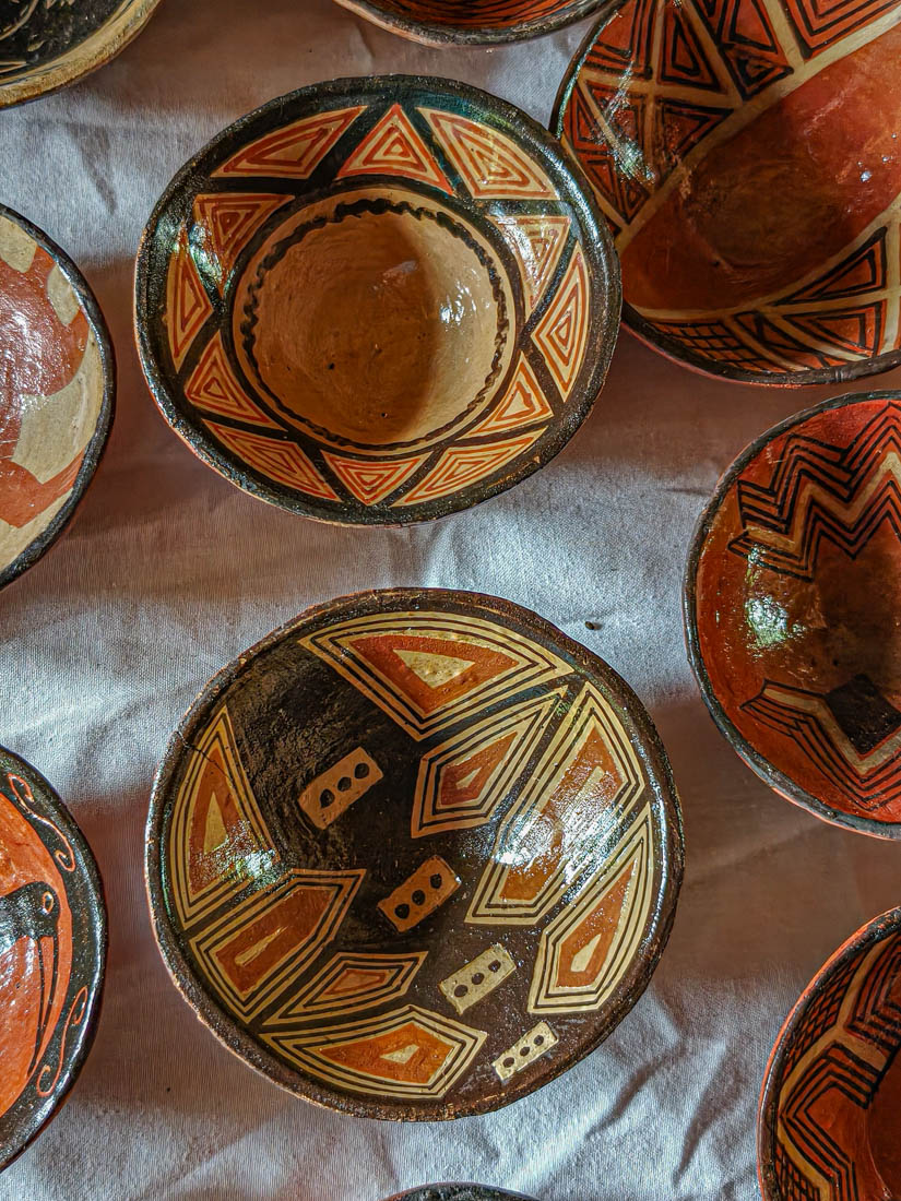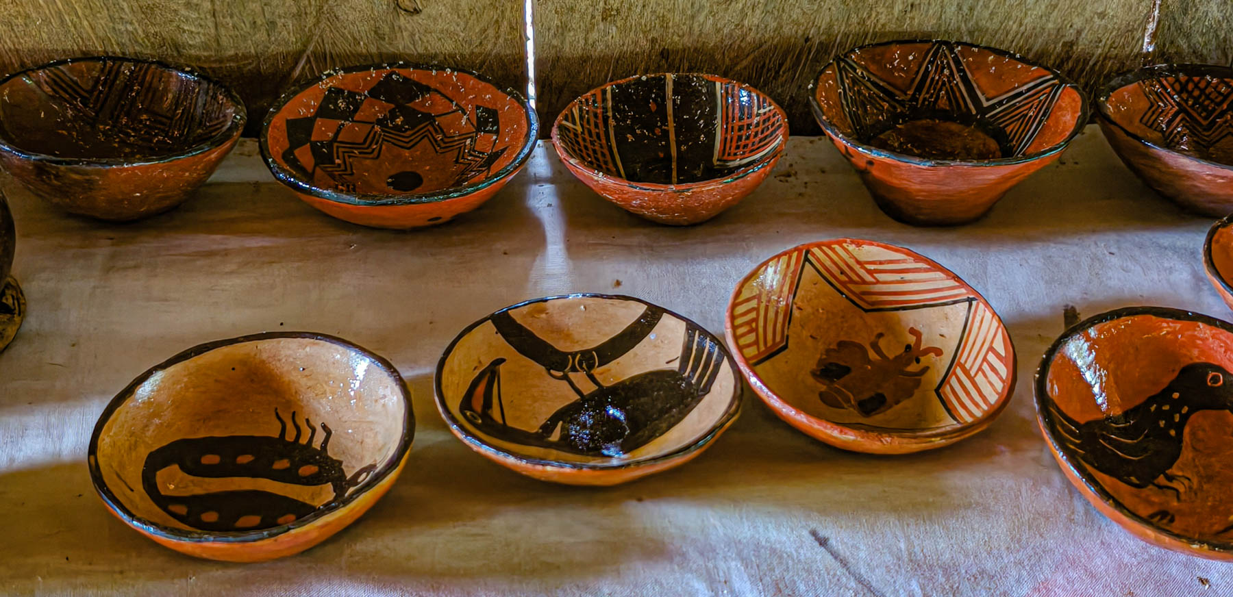 In een grote ronde hut krijgen we een demonstratie keramiek maken, de kinderen zijn meer geïnteresseerd in armbandjes en de meisjes kopen alle drie hetzelfde armbandje.