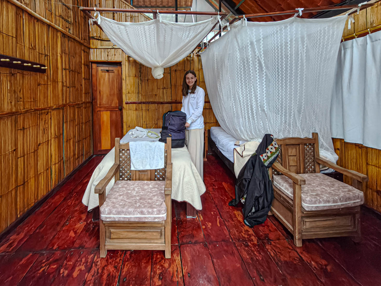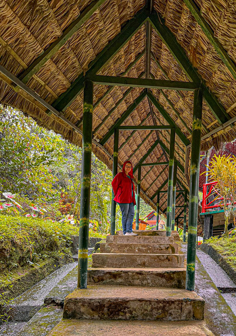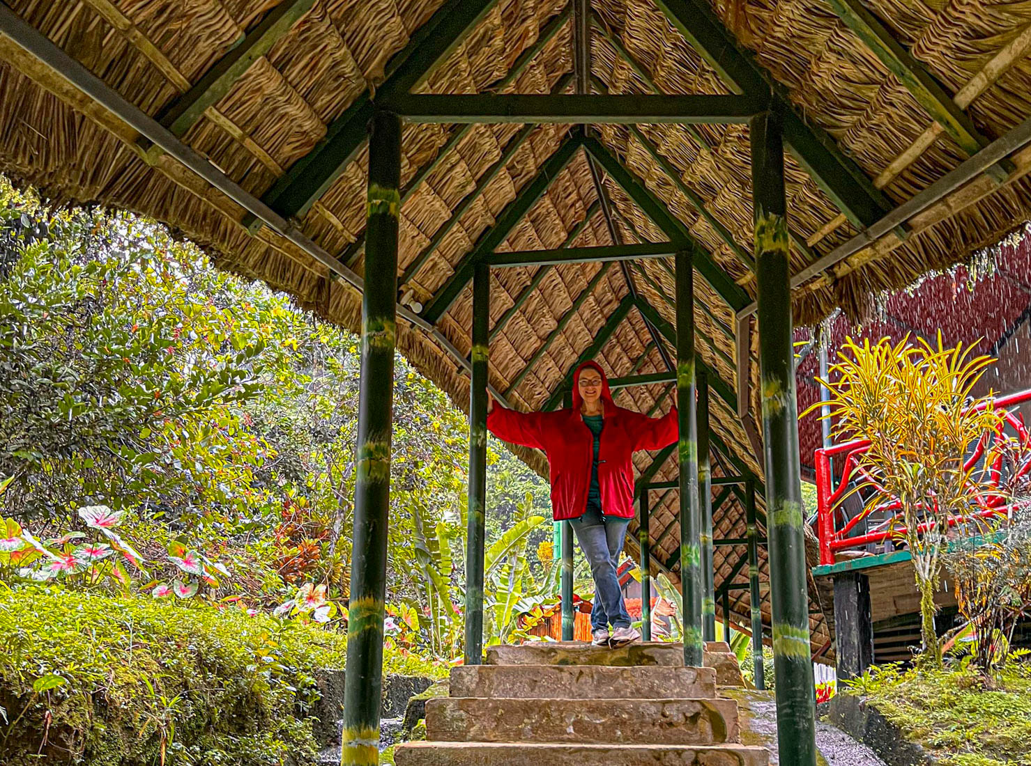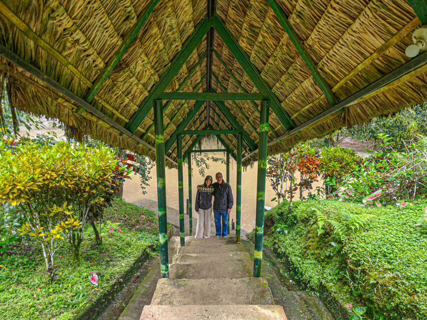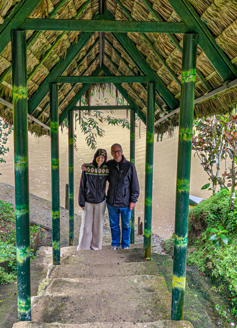 Ons laatste ontbijt in de jungle en de jungle weent mee om ons afscheid. Iedereen heeft zijn smartphone en powerbank opgeladen bij het oplaadstation in het restaurant of elders.