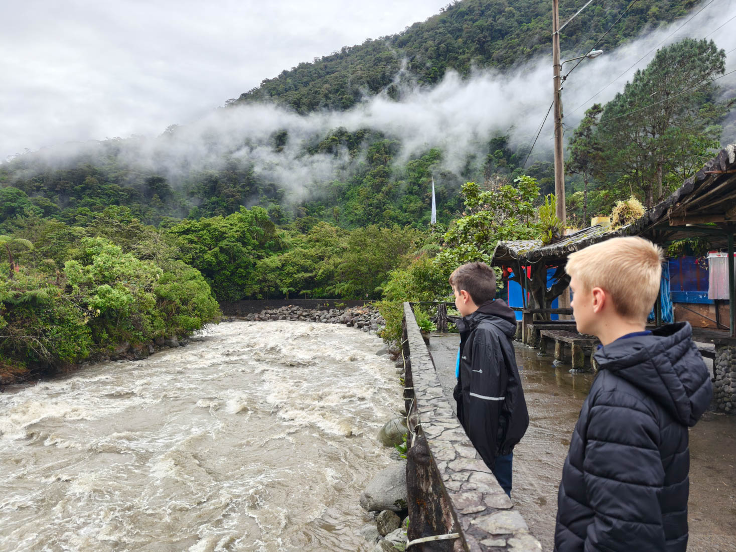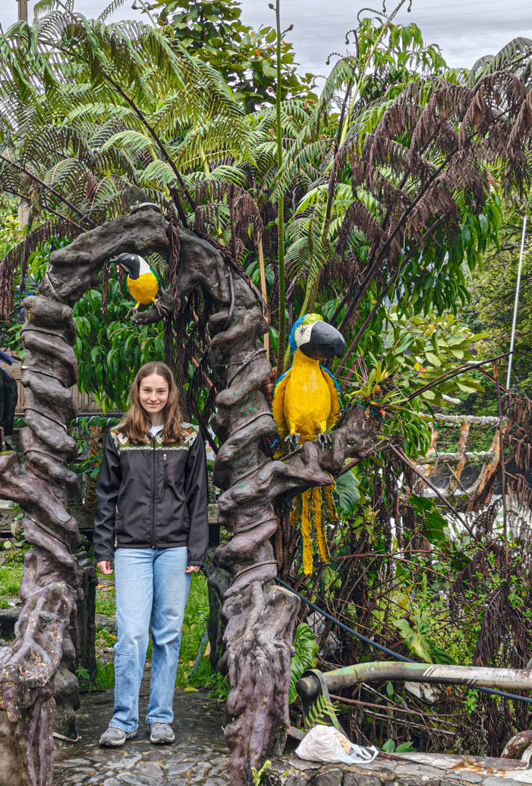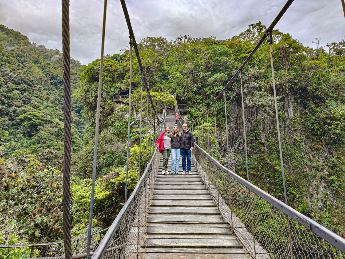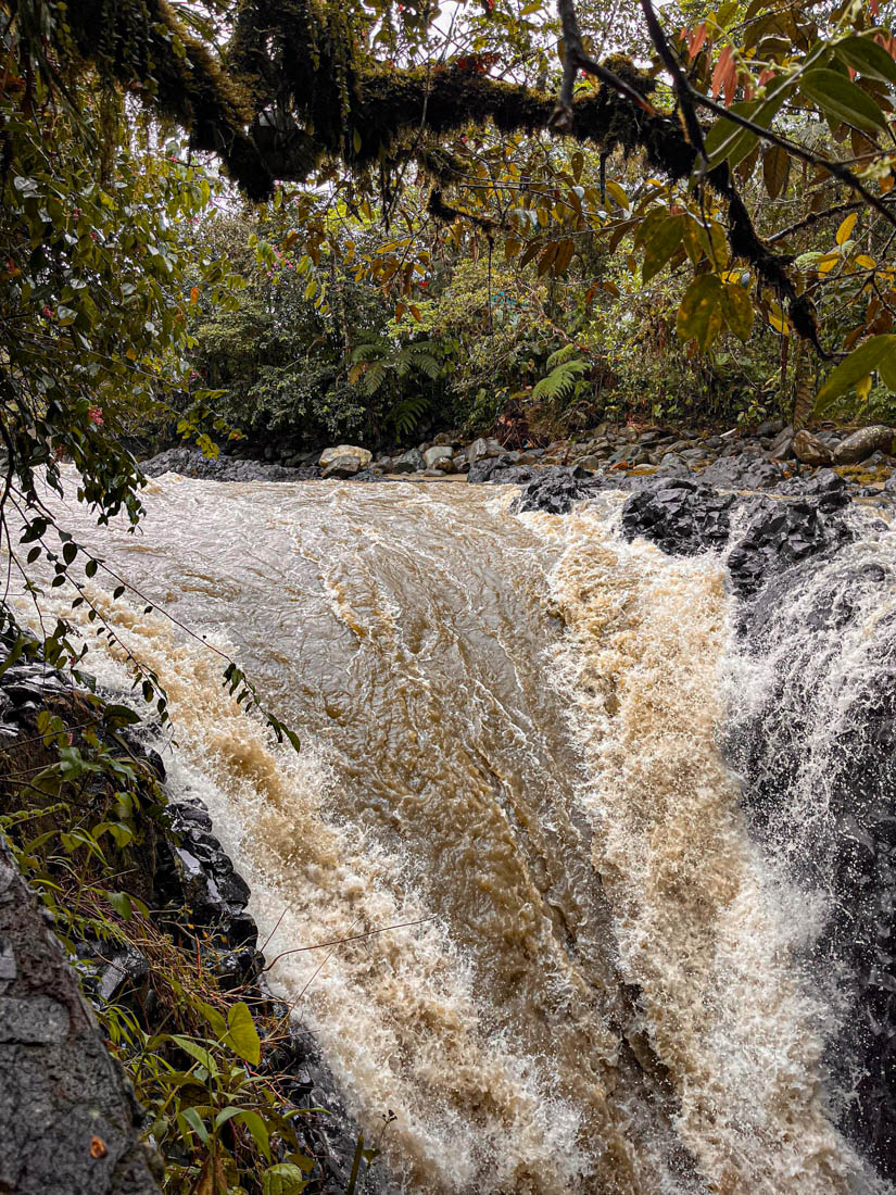Om 9 uur staan we aan de ingang vande Cascada del pailon del diablo. Het is niet de hoogste, de breedste of de mooiste die we al ooit gezien hebben maar hij is toch wel prachtig gelegen, en de touwbruggen en trapjes erlangs maken het heel plezant voor de kinderen.