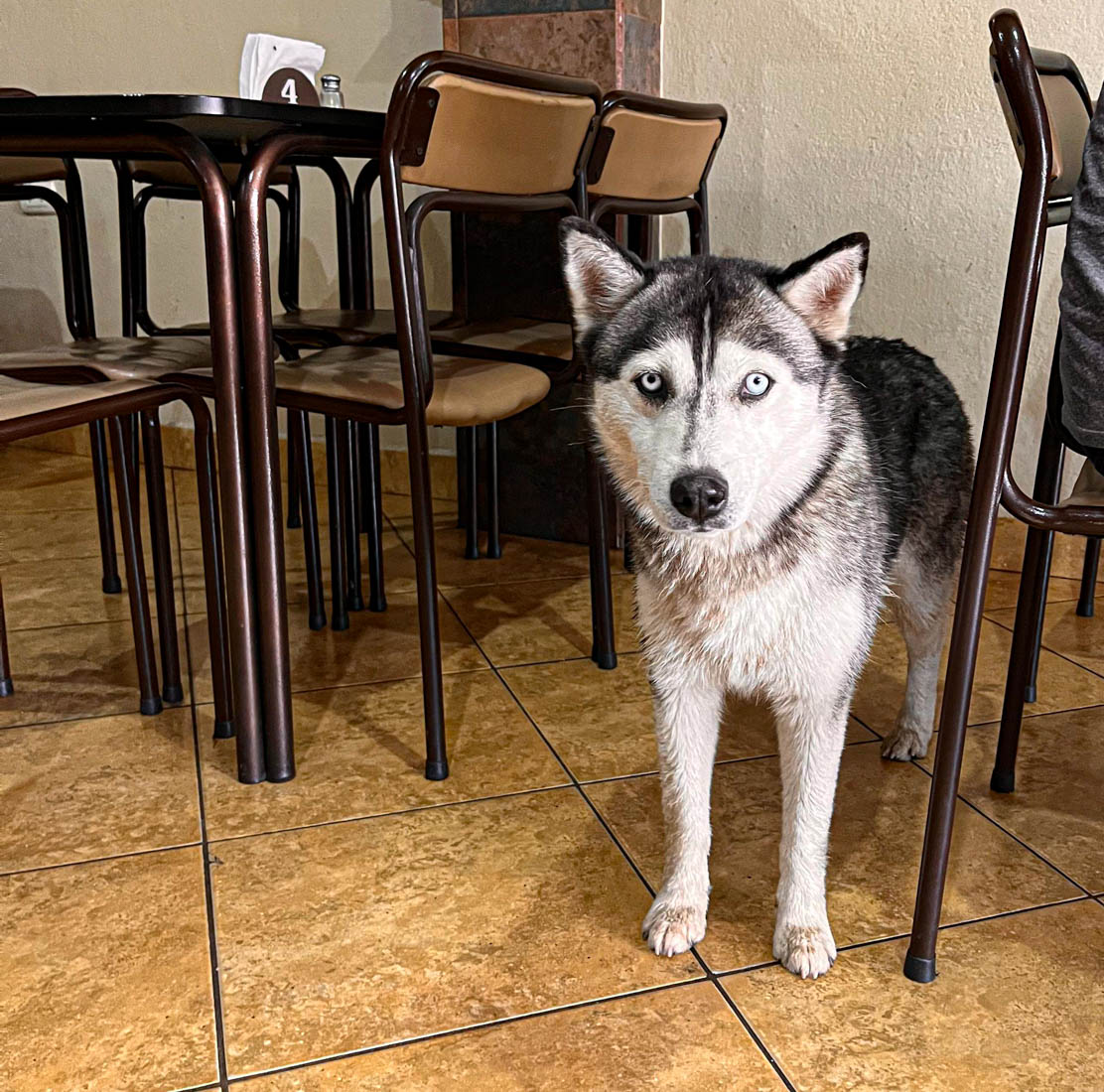 Er loopt een hond rond die – als hij wat dichter bij onze tafel komt – enorm hard stinkt maar die niet weggehaald wordt door het personeel. Personeel is trouwens erg vriendelijk en we mogen komen tonen wat we allemaal willen. Ideaal !