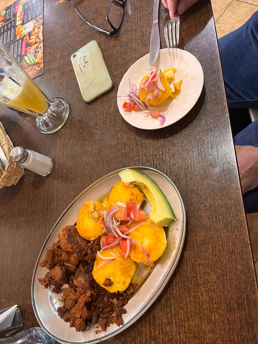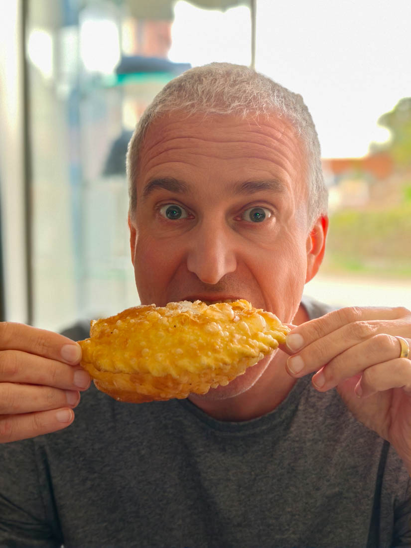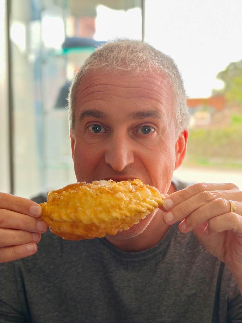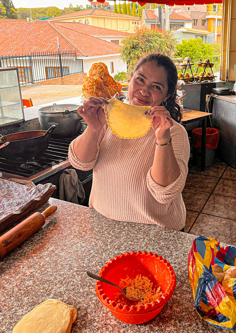 Na ons vieruurtje hebben we zin in een koffie en gaan naar de overkant. We zien daar waar ze empanada’s maken en die… verkopen aan het restaurant waar we net naartoe gegaan zijn.