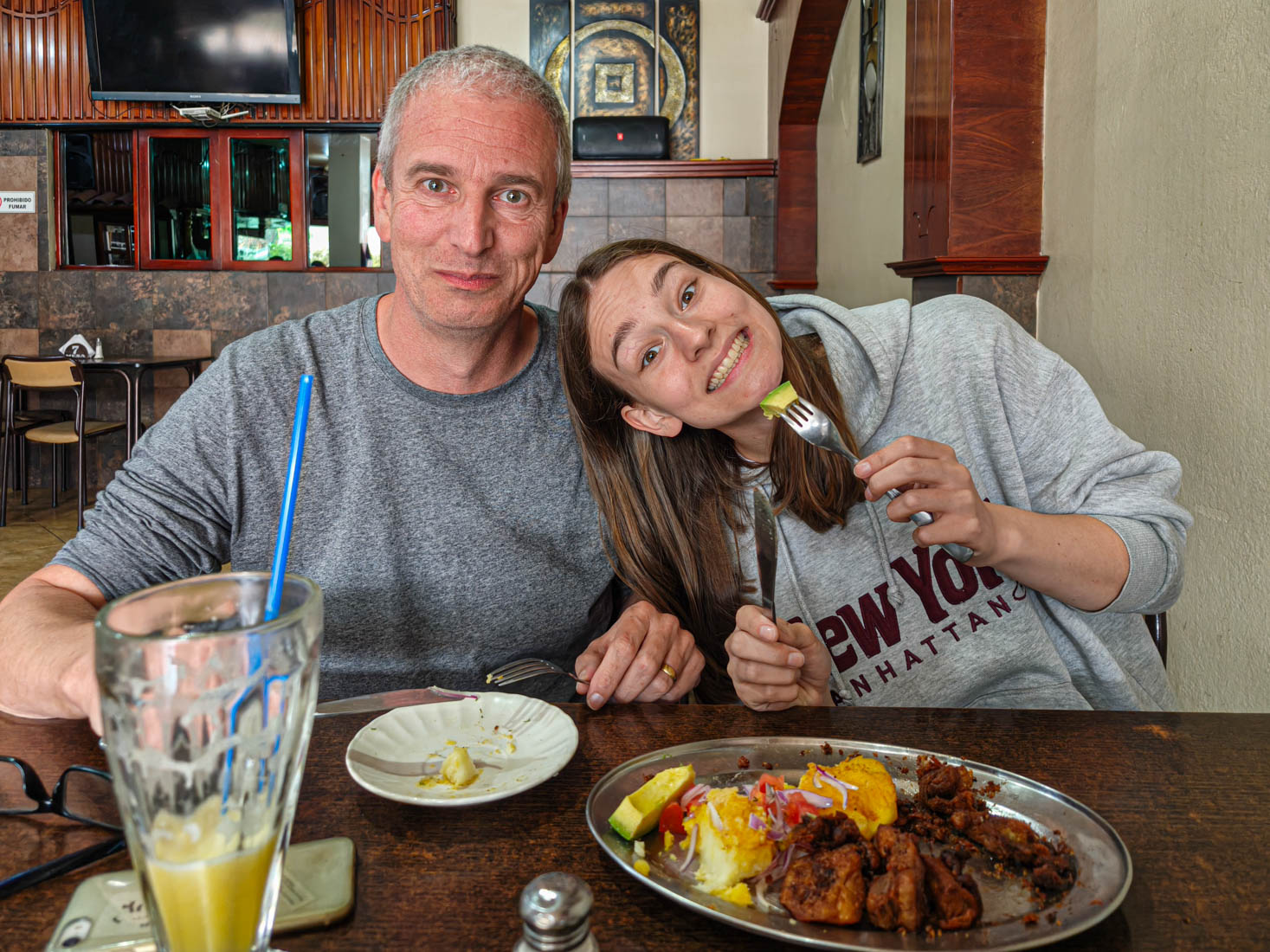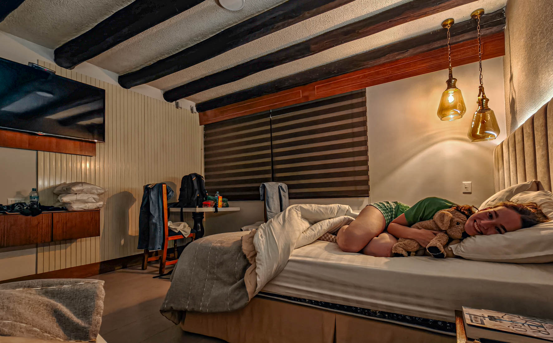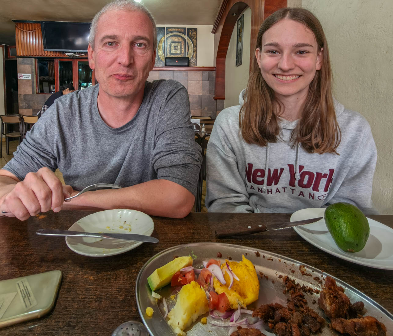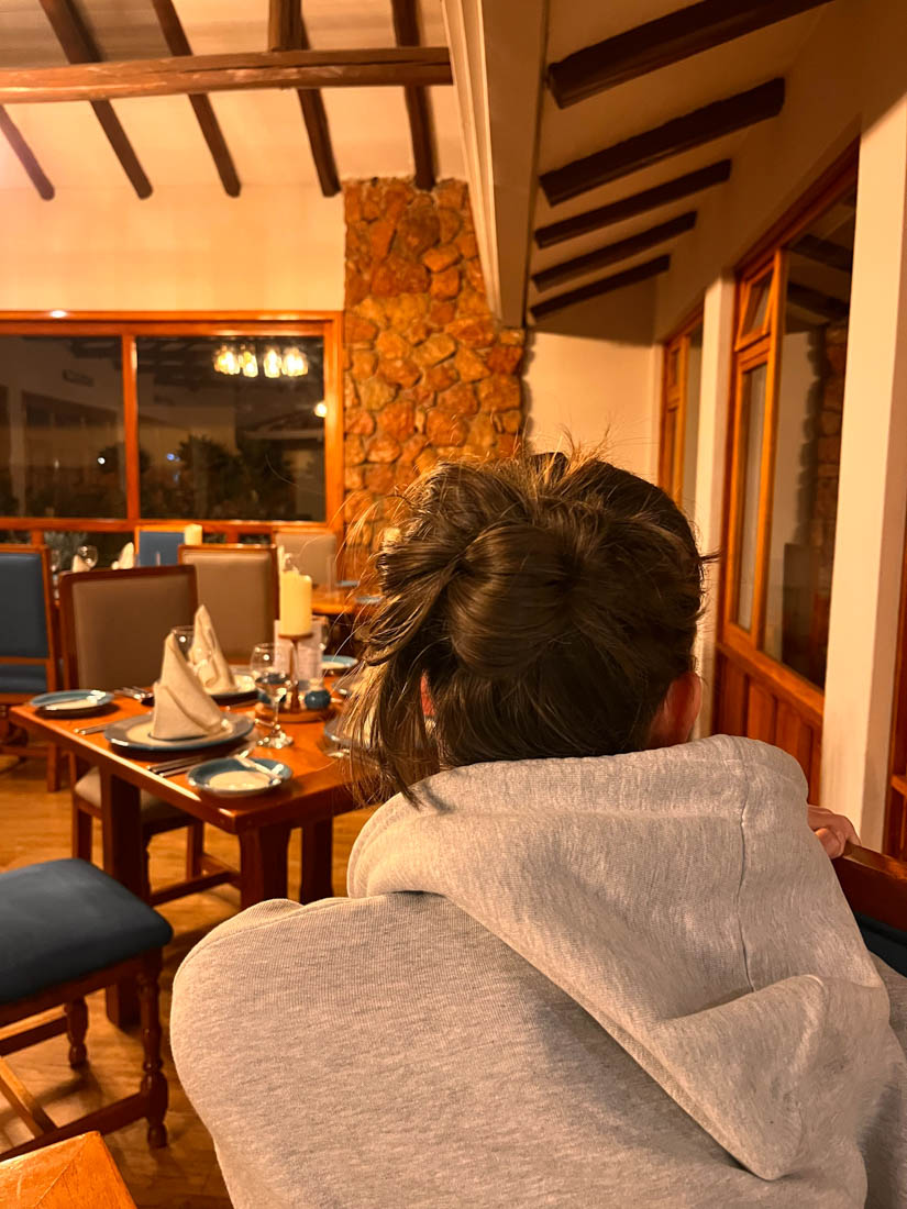 Het is al een stuk in de namiddag als we in wat Karin noemt “het mooiste hotel van de reis” aankomen. Het is een vrij uitgestrekt hotel : we moeten verschillende tientallen meters lopen vanaf de receptie, en enkele trappen omhoog klimmen. De bedden zijn ook niet zo heel ruim als we gewoon zijn in Ecuador maar we zijn allang blij dat we hier enkele nachten na elkaar blijven en niet elke dag onze koffers weer moeten inpakken.