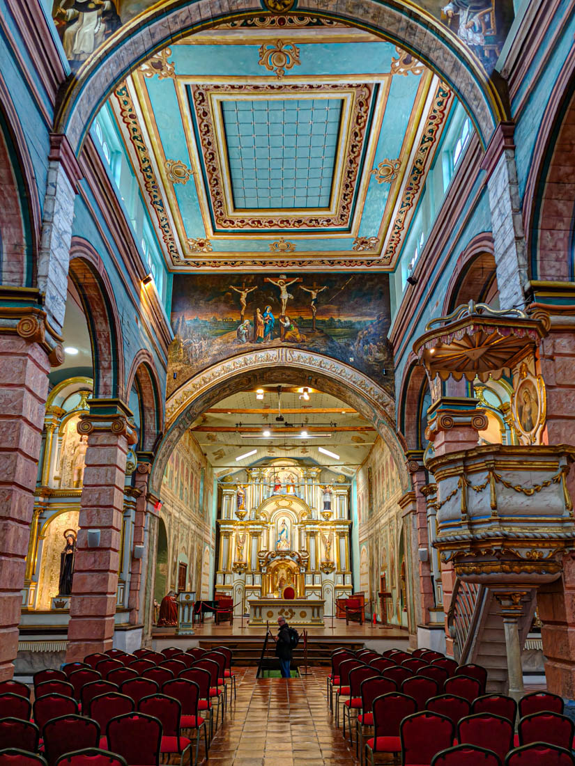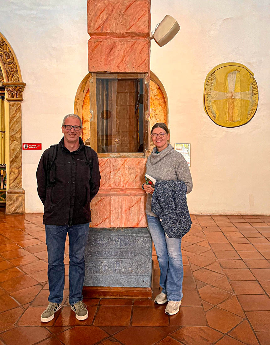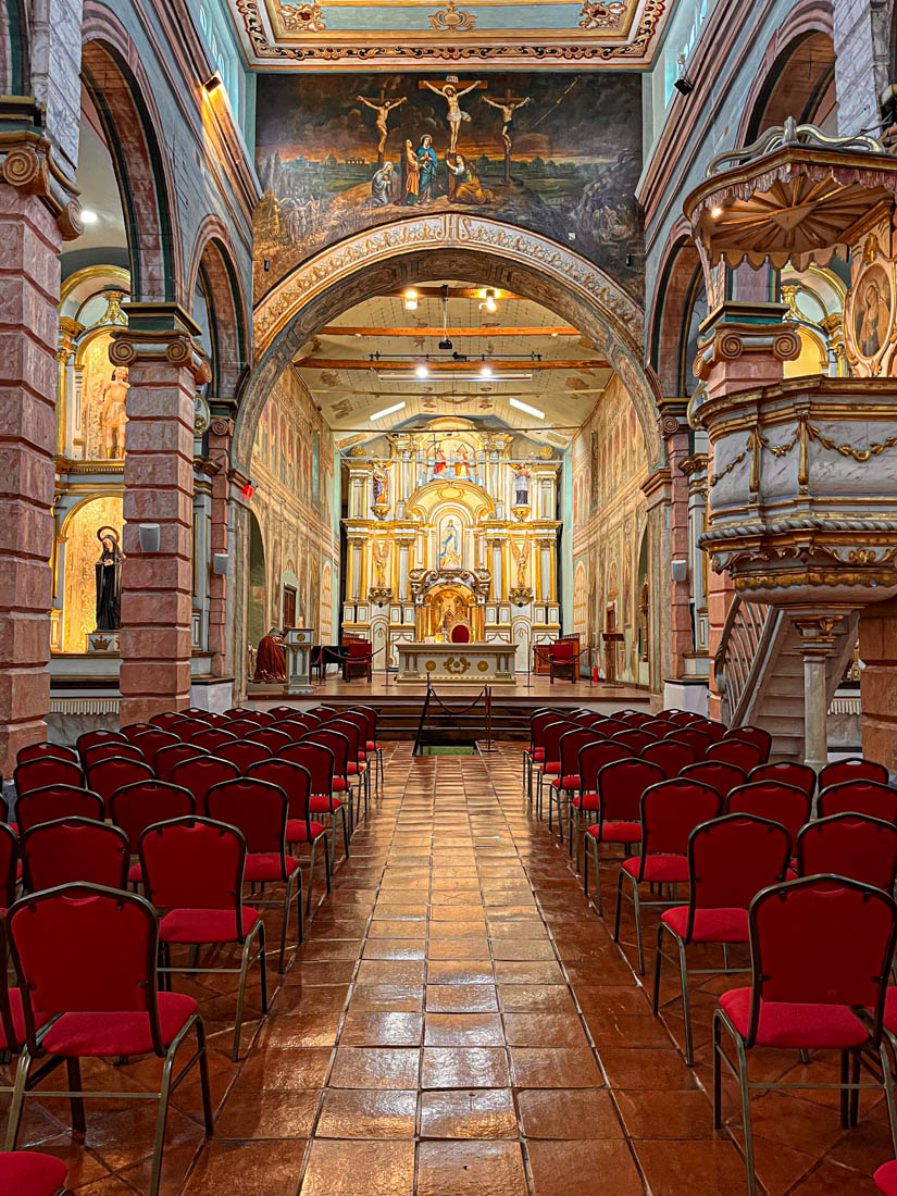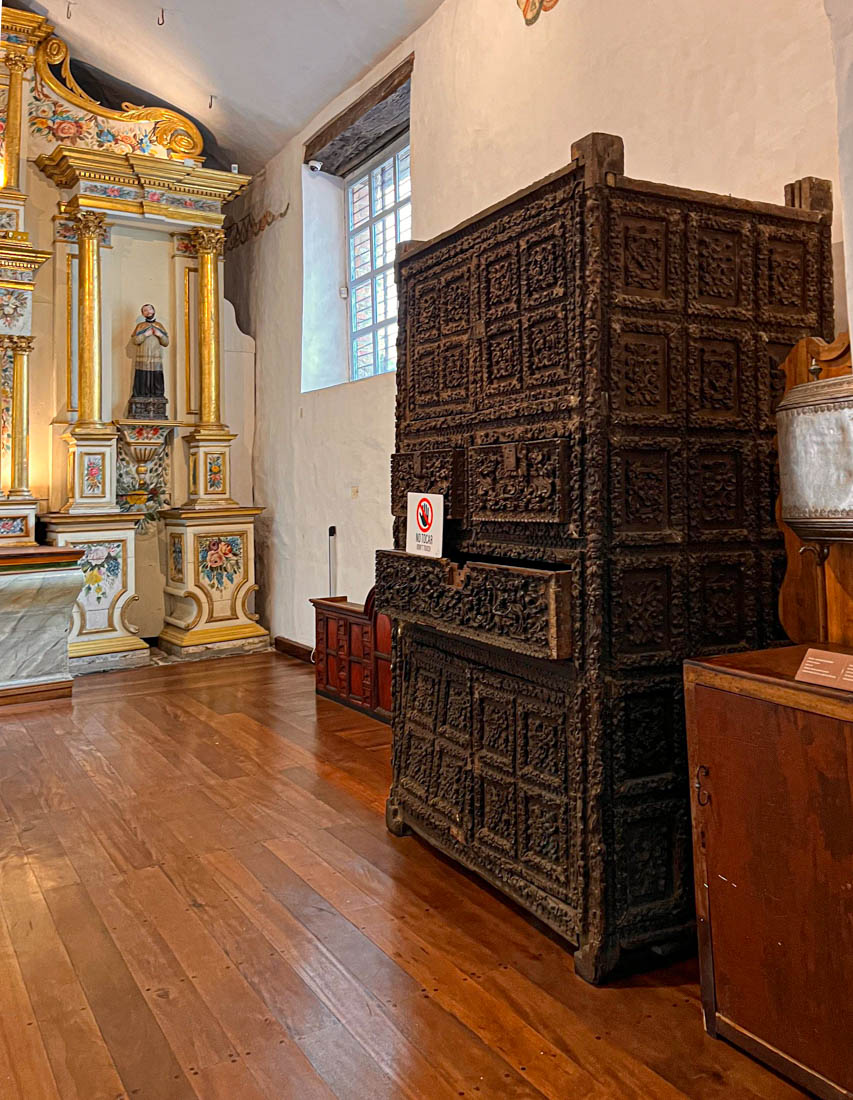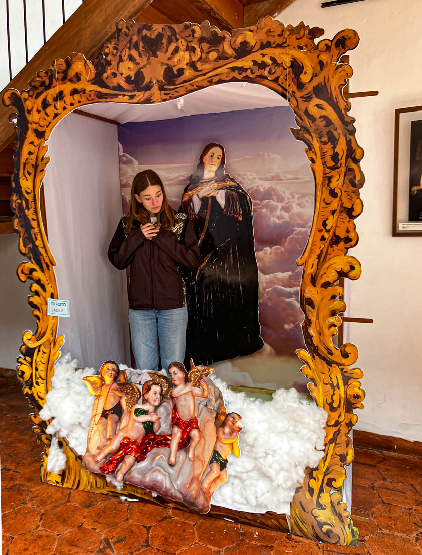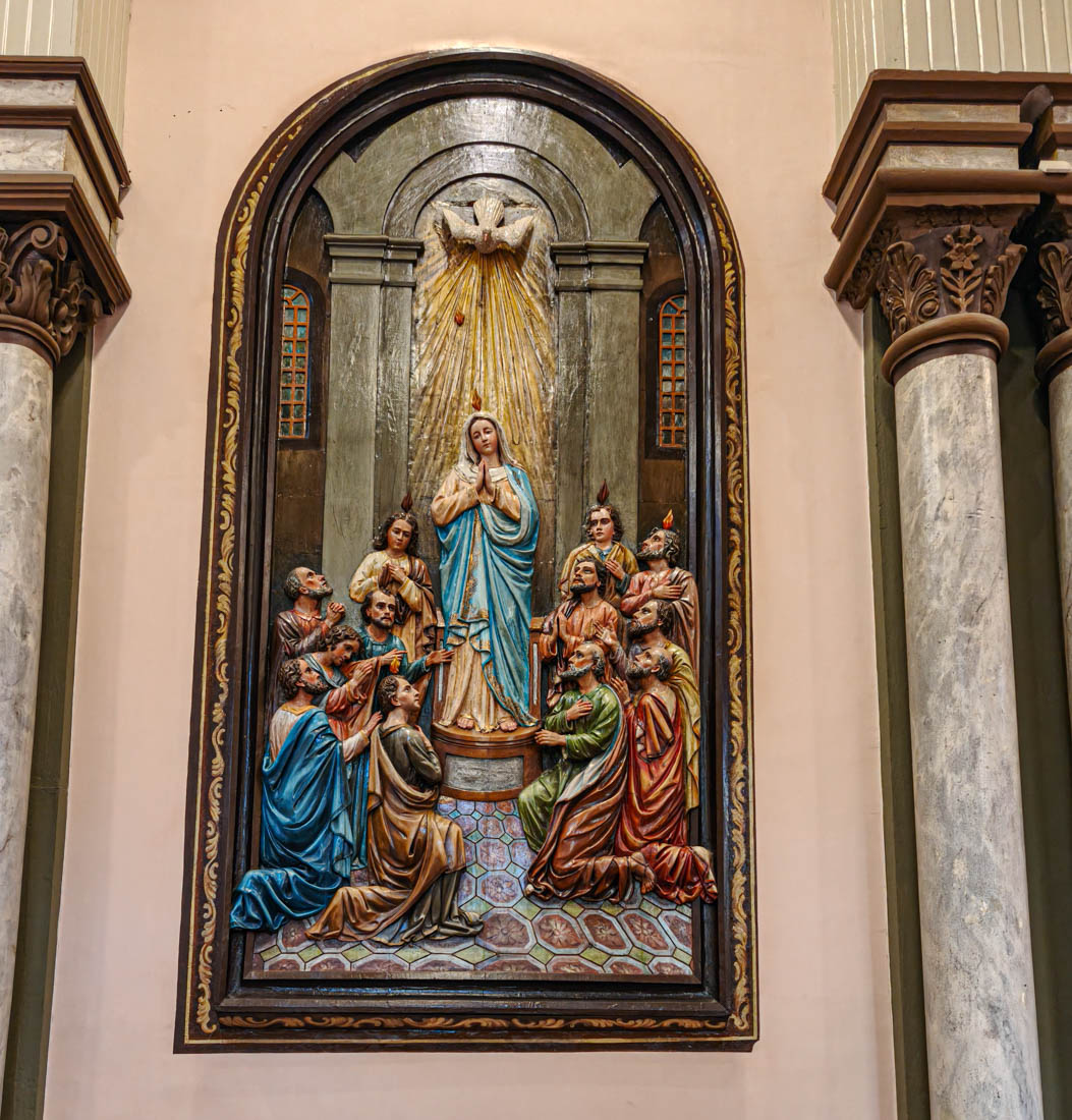 Omdat we gisteren de nieuwe kathedraal hebben bezocht en Julia ook graag een kathedraal wil zien, bezoeken we nu de oude kathedraal. Het is een laag wit gebouwtje met een interessante tentoonstelling religieuze kunst, inclusief een collectie levensgrote beelden die het laatste avondmaal voorstellen. We kunnen zien hoe het interieur van deze kerk eigenlijk bijna helemaal versierd is met beschilderd hout.