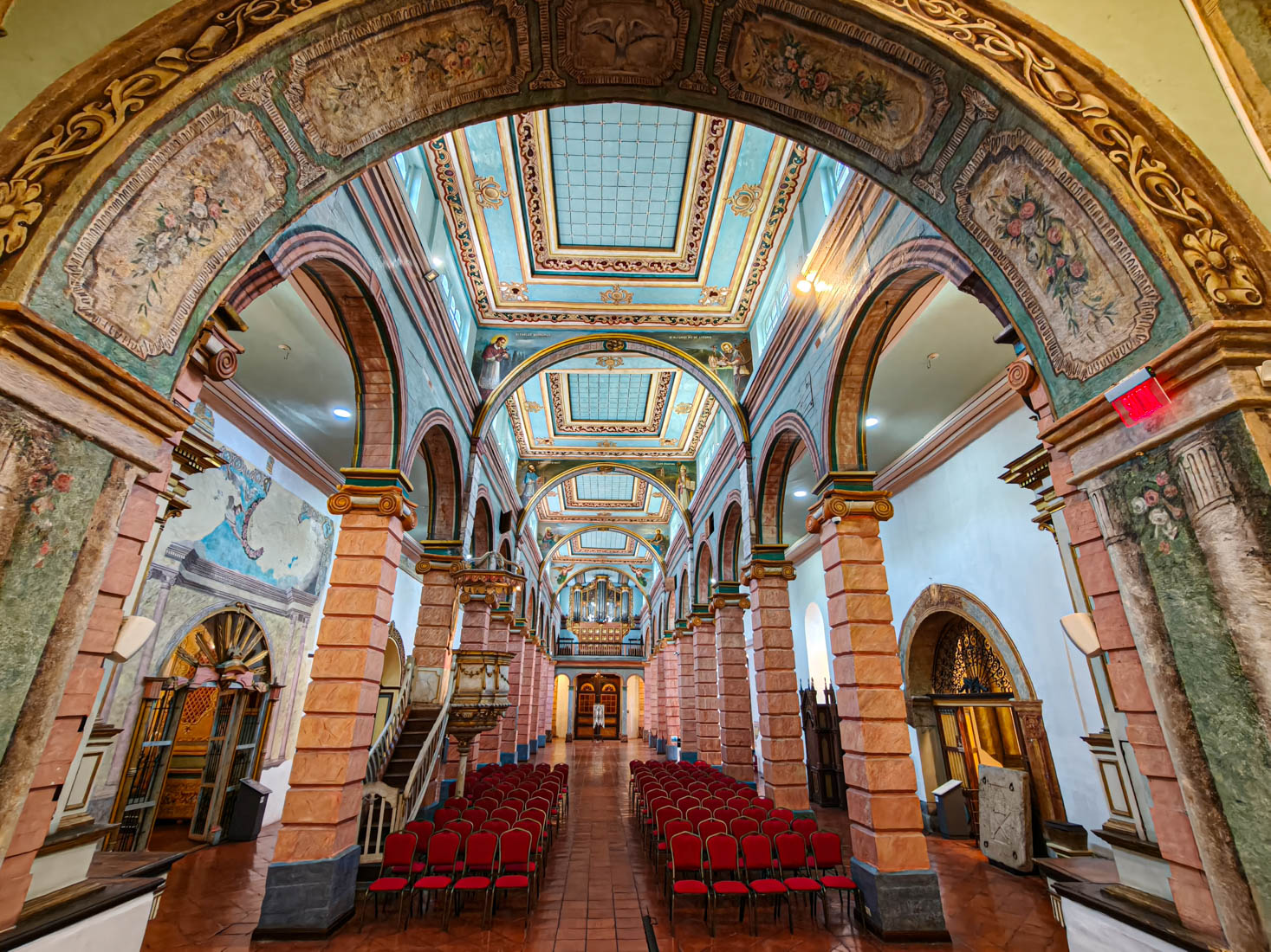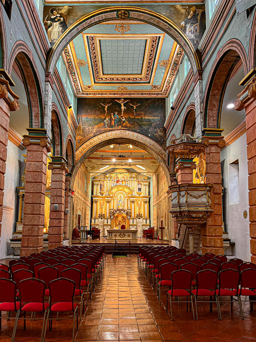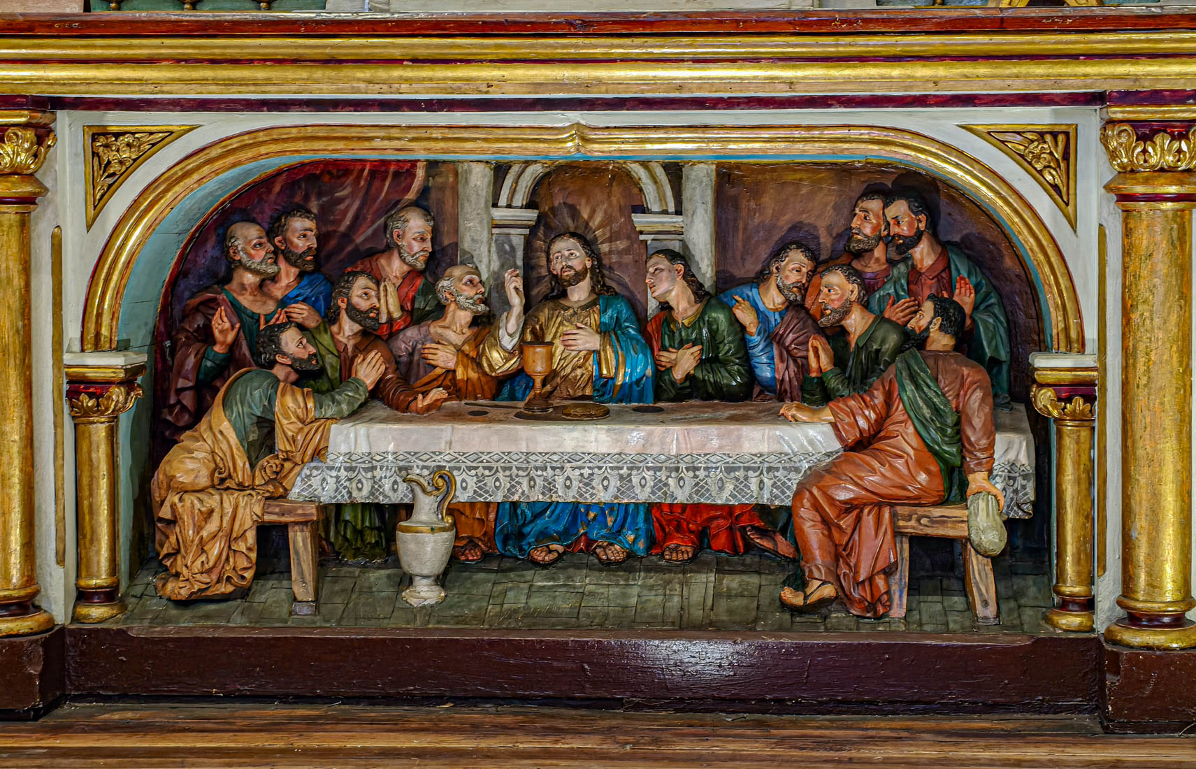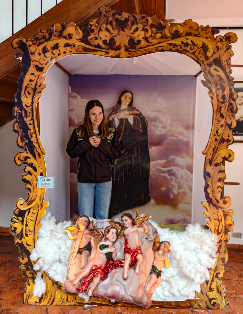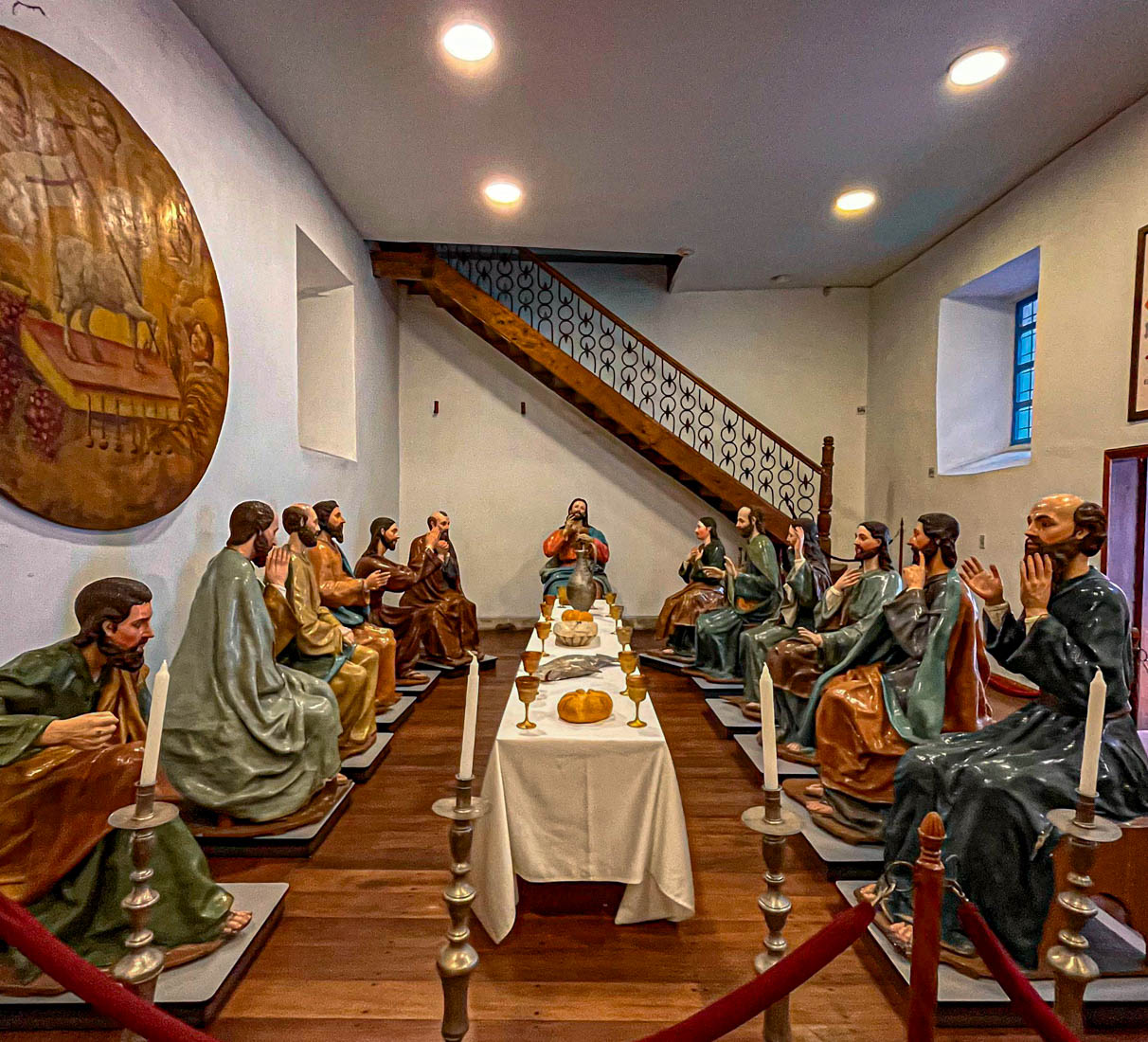 Omdat we gisteren de nieuwe kathedraal hebben bezocht en Julia ook graag een kathedraal wil zien, bezoeken we nu de oude kathedraal. Het is een laag wit gebouwtje met een interessante tentoonstelling religieuze kunst, inclusief een collectie levensgrote beelden die het laatste avondmaal voorstellen. We kunnen zien hoe het interieur van deze kerk eigenlijk bijna helemaal versierd is met beschilderd hout.