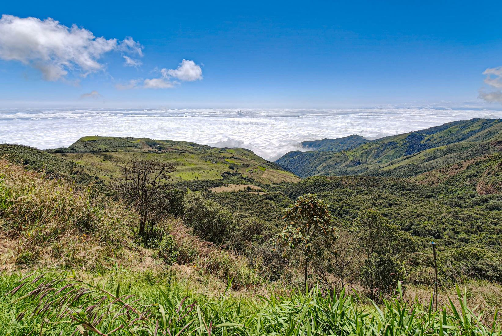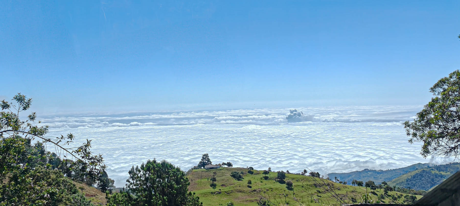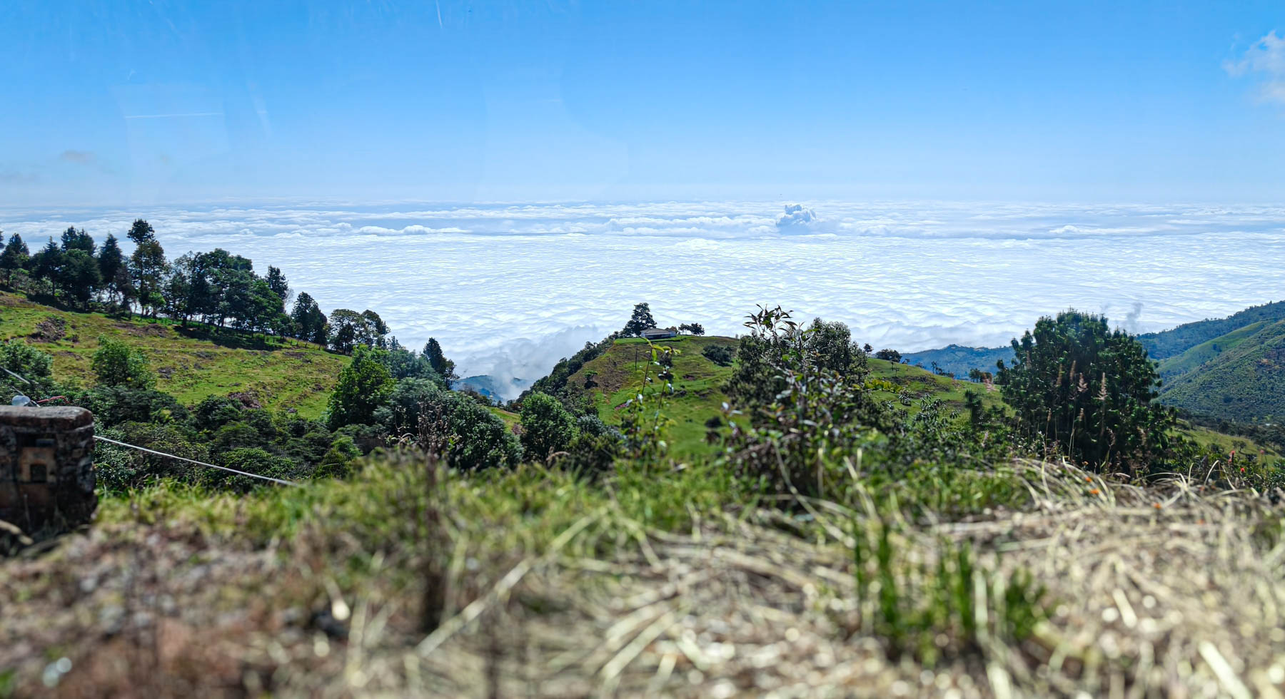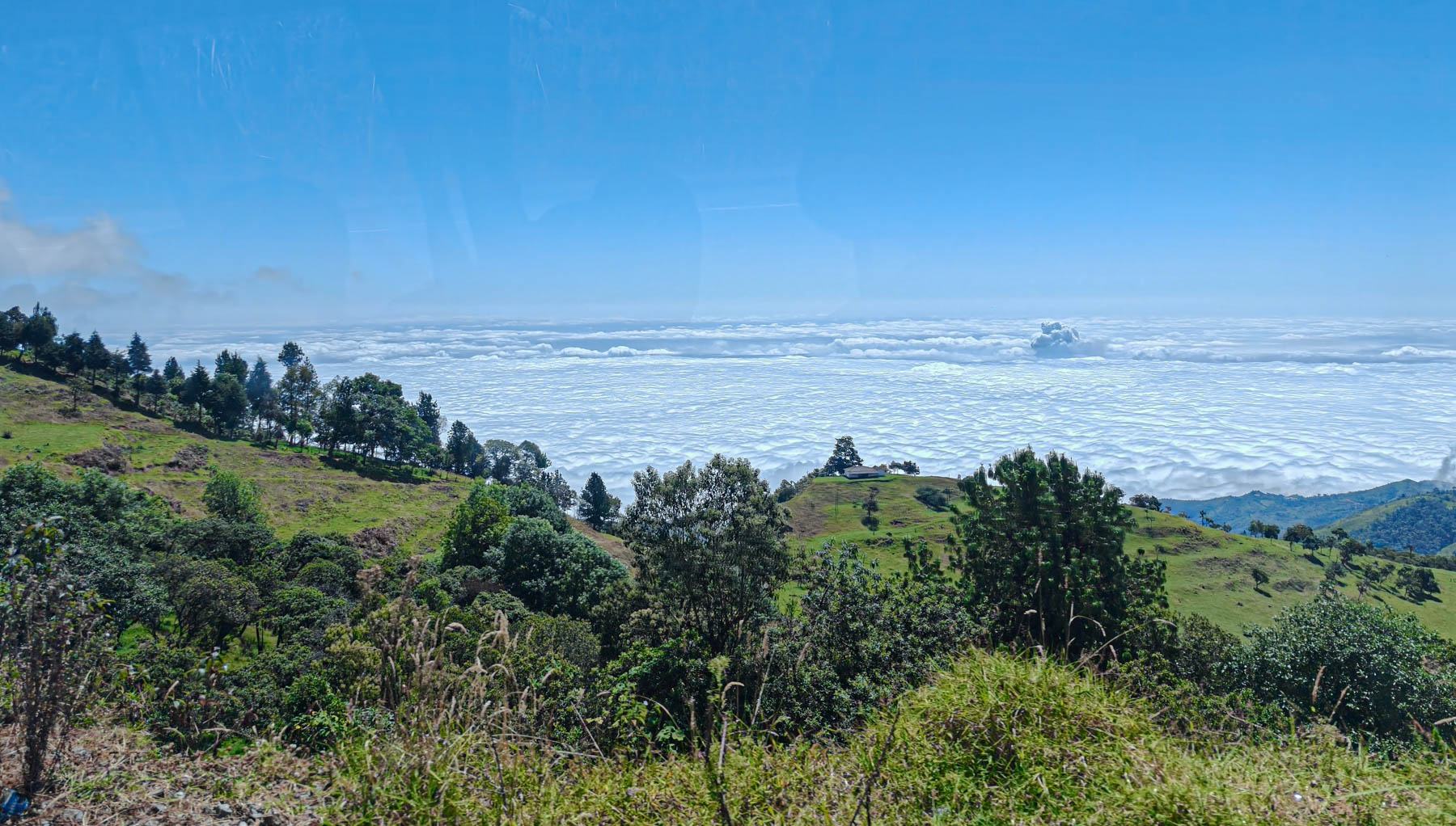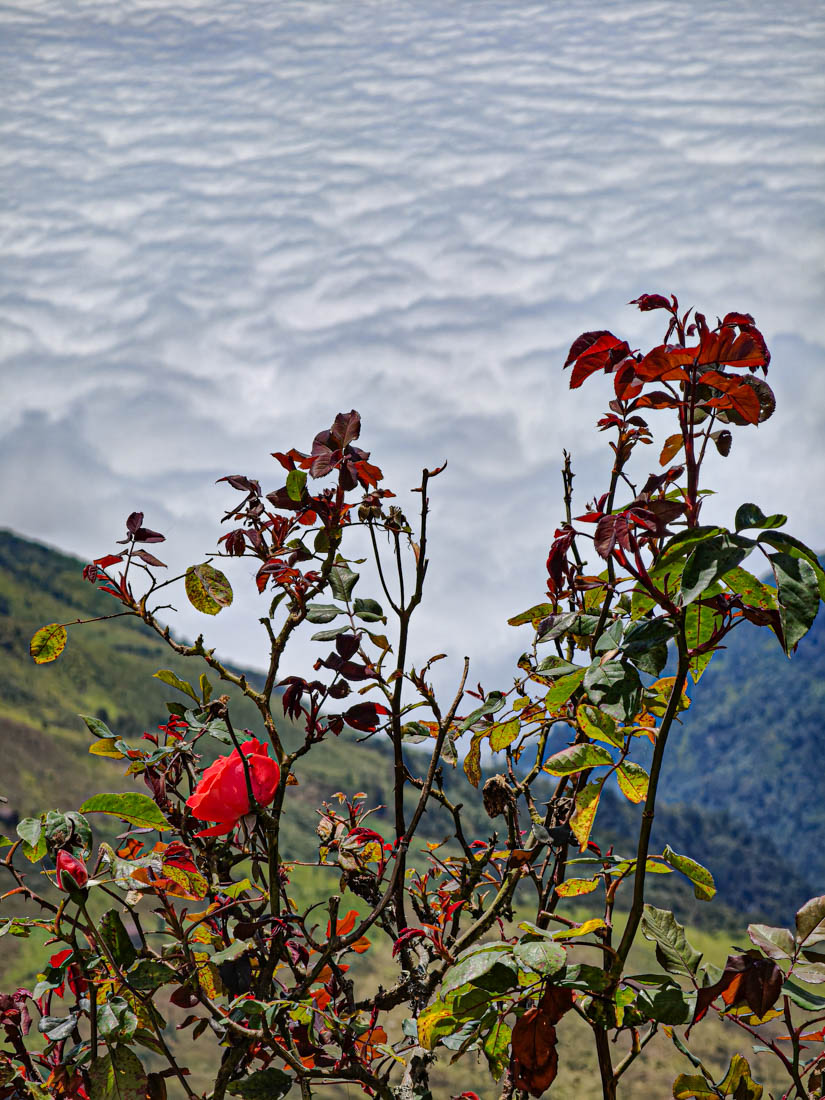 iets bijzonders : het dal is overdekt met wolken. We rijden boven de wolken