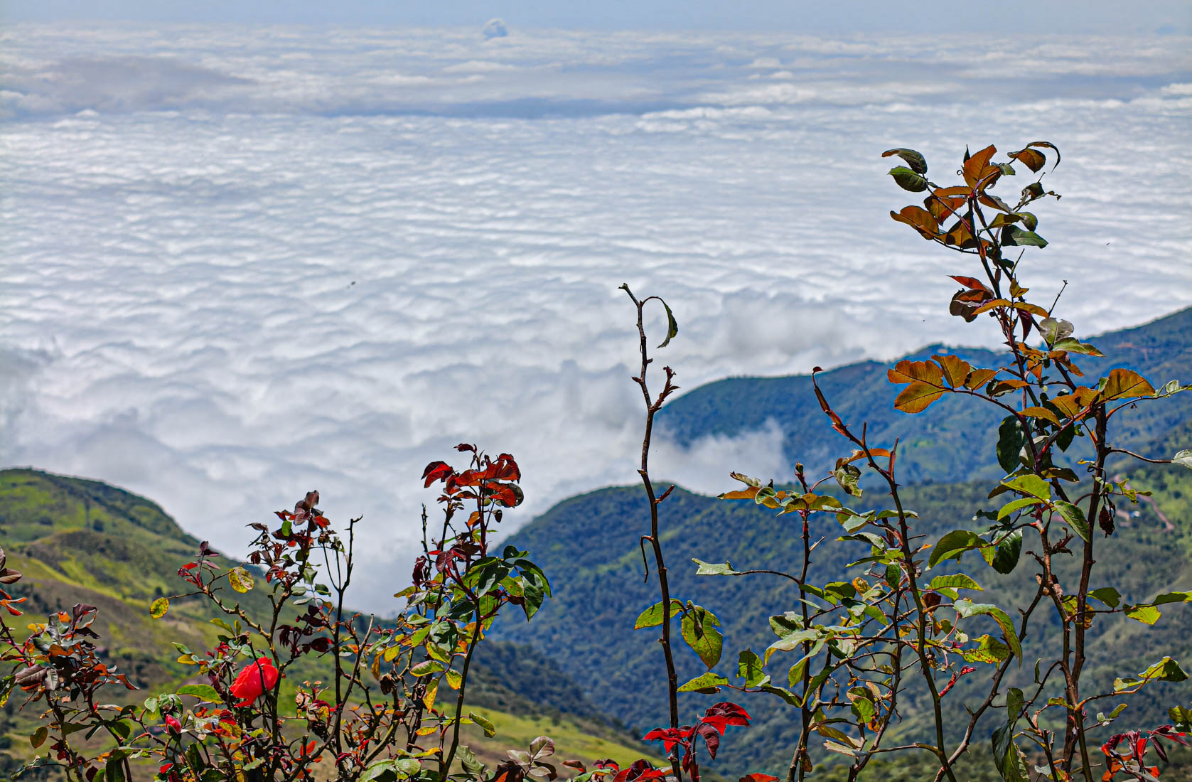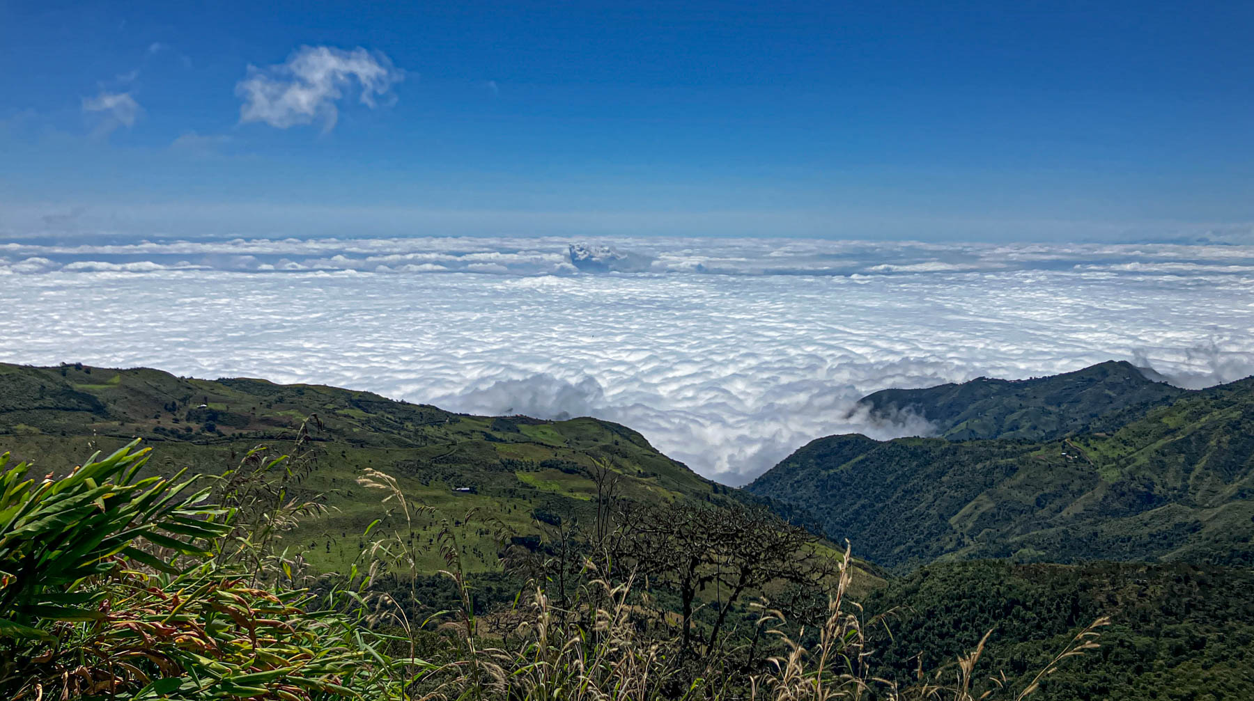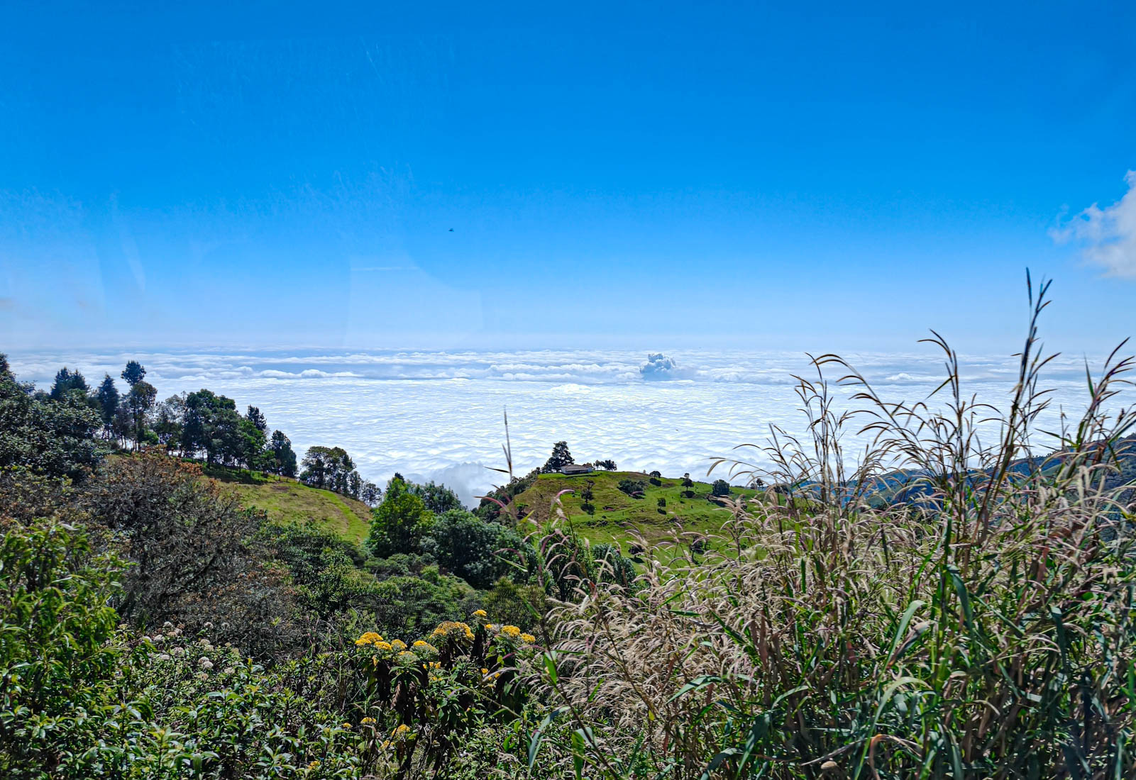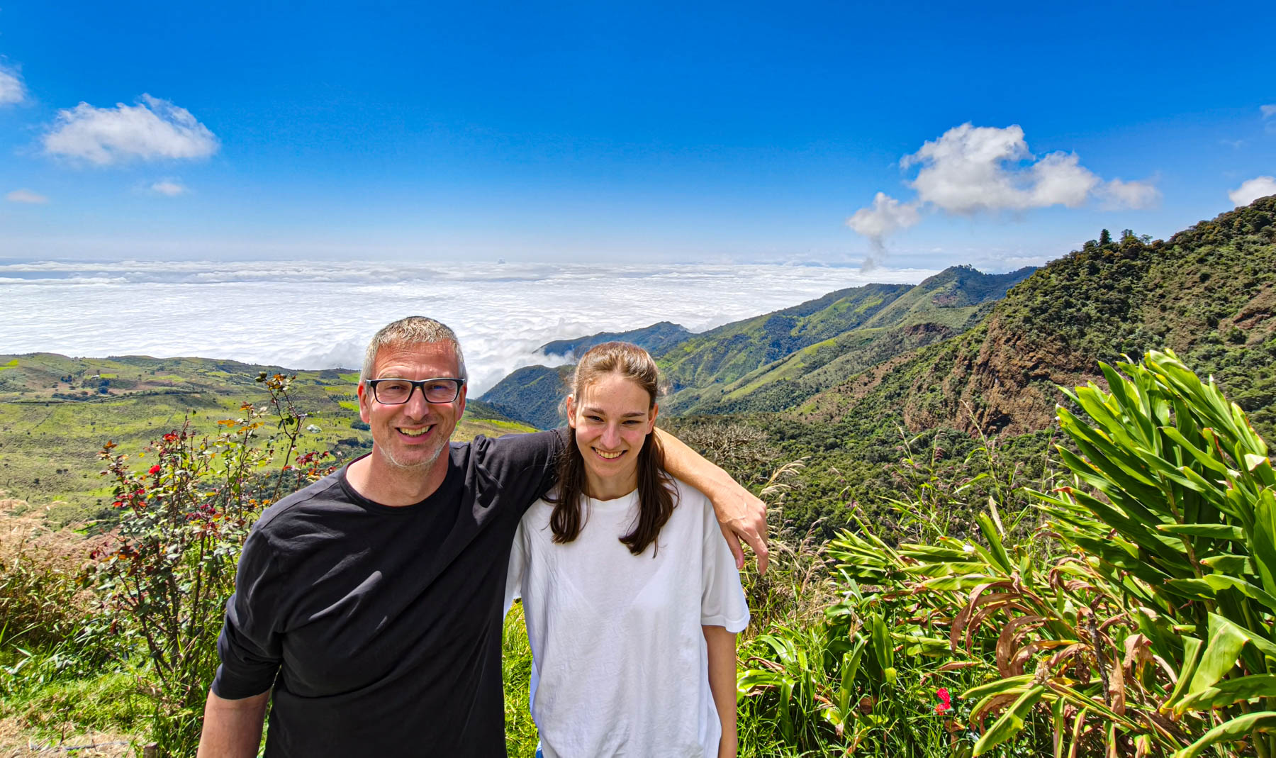 iets bijzonders : het dal is overdekt met wolken. We rijden boven de wolken