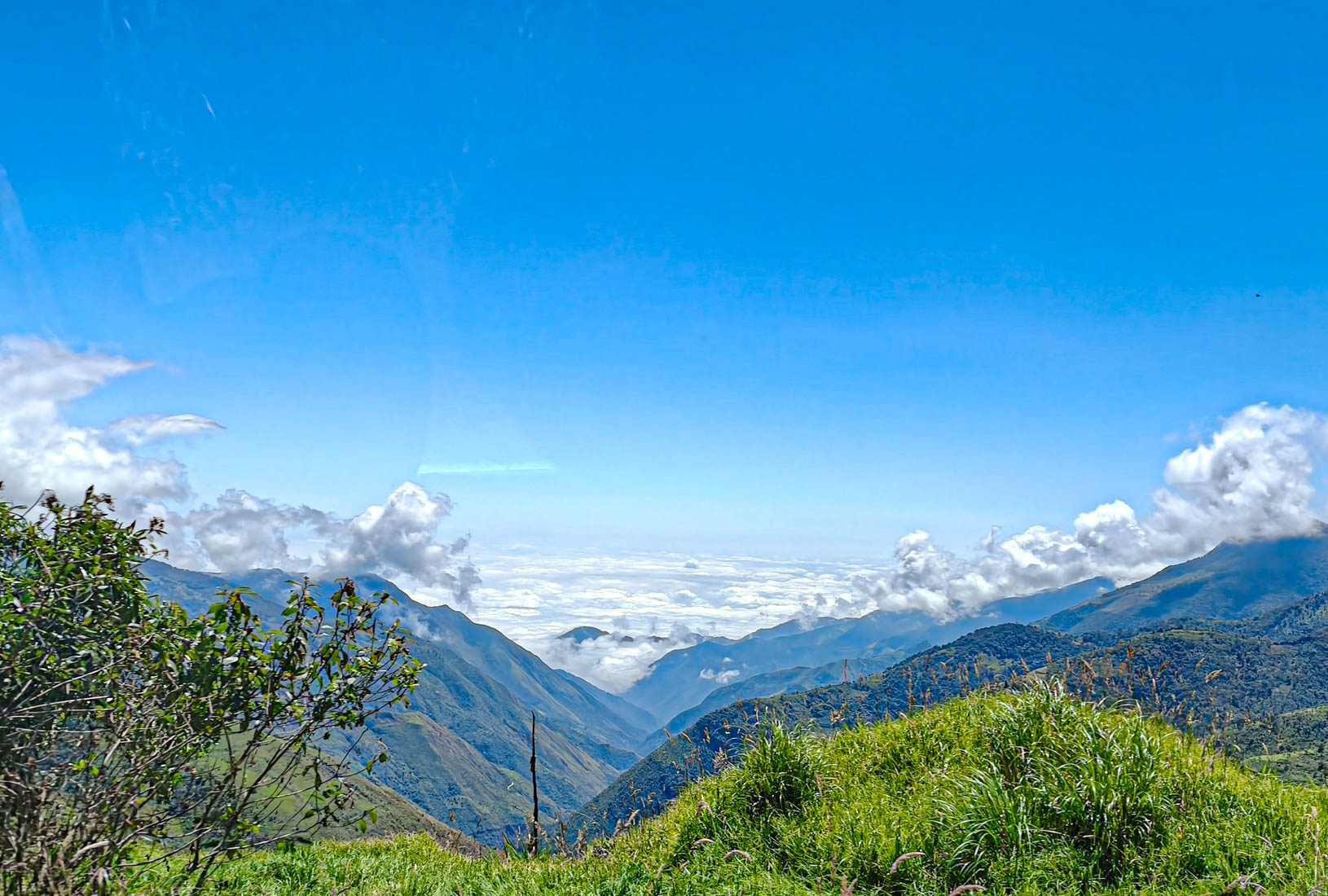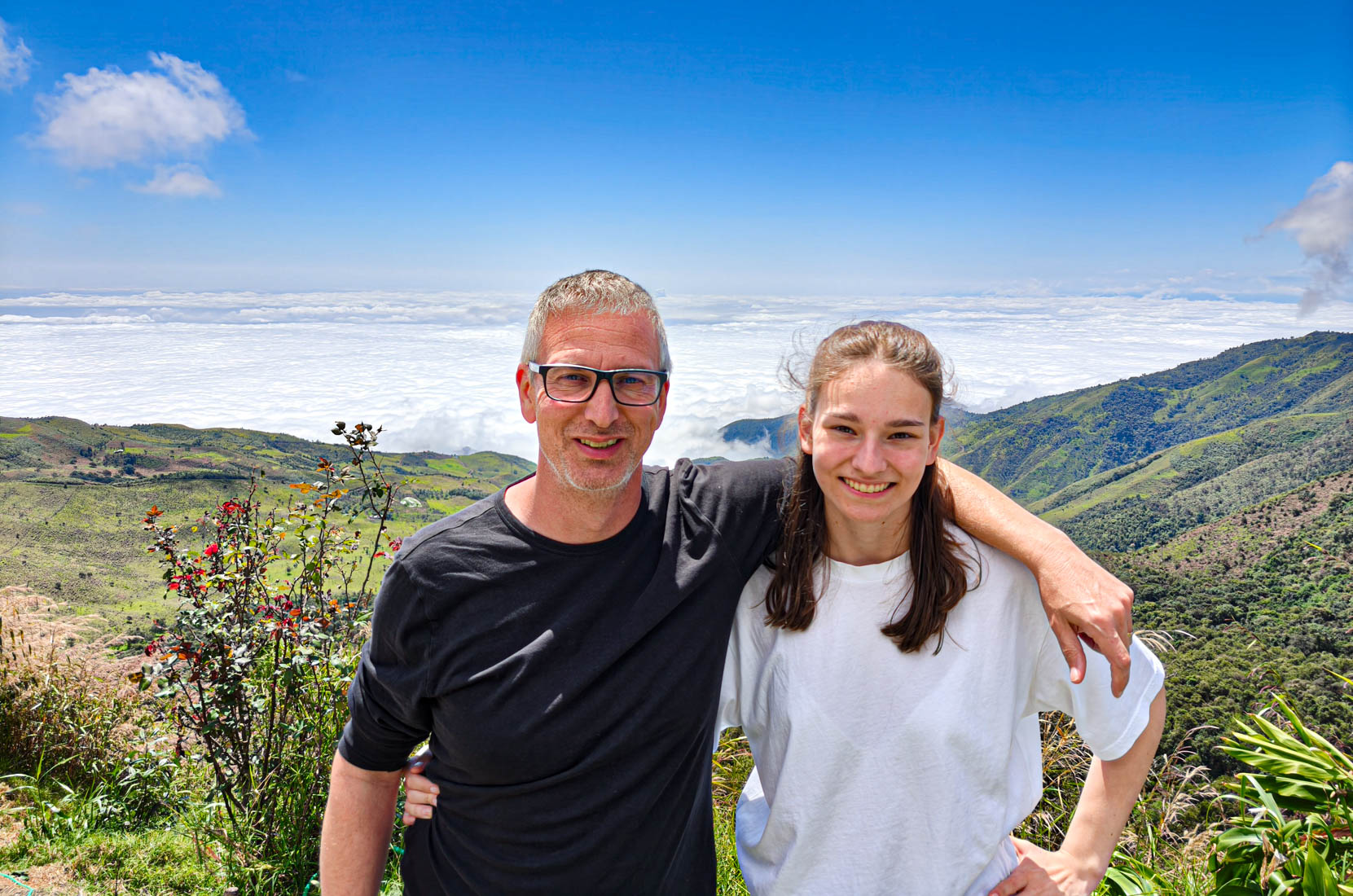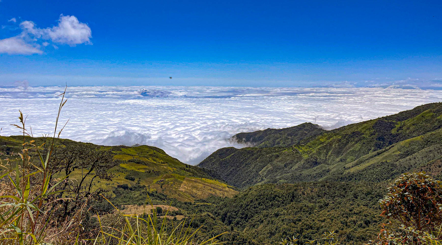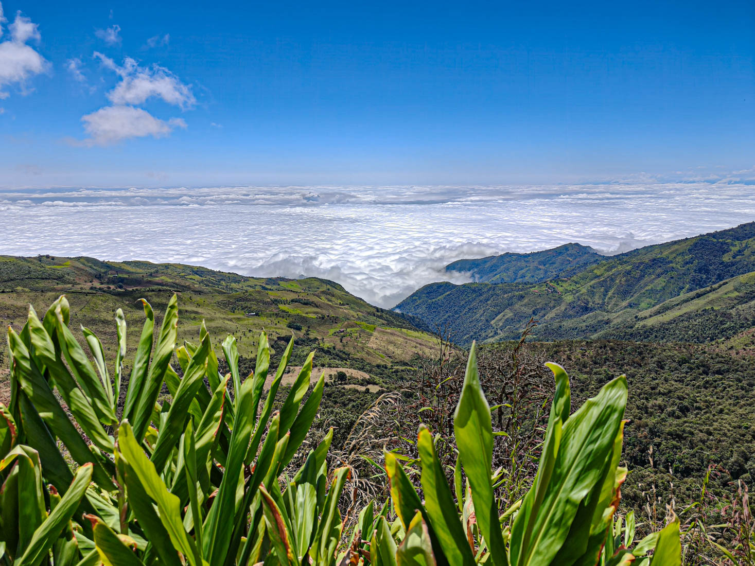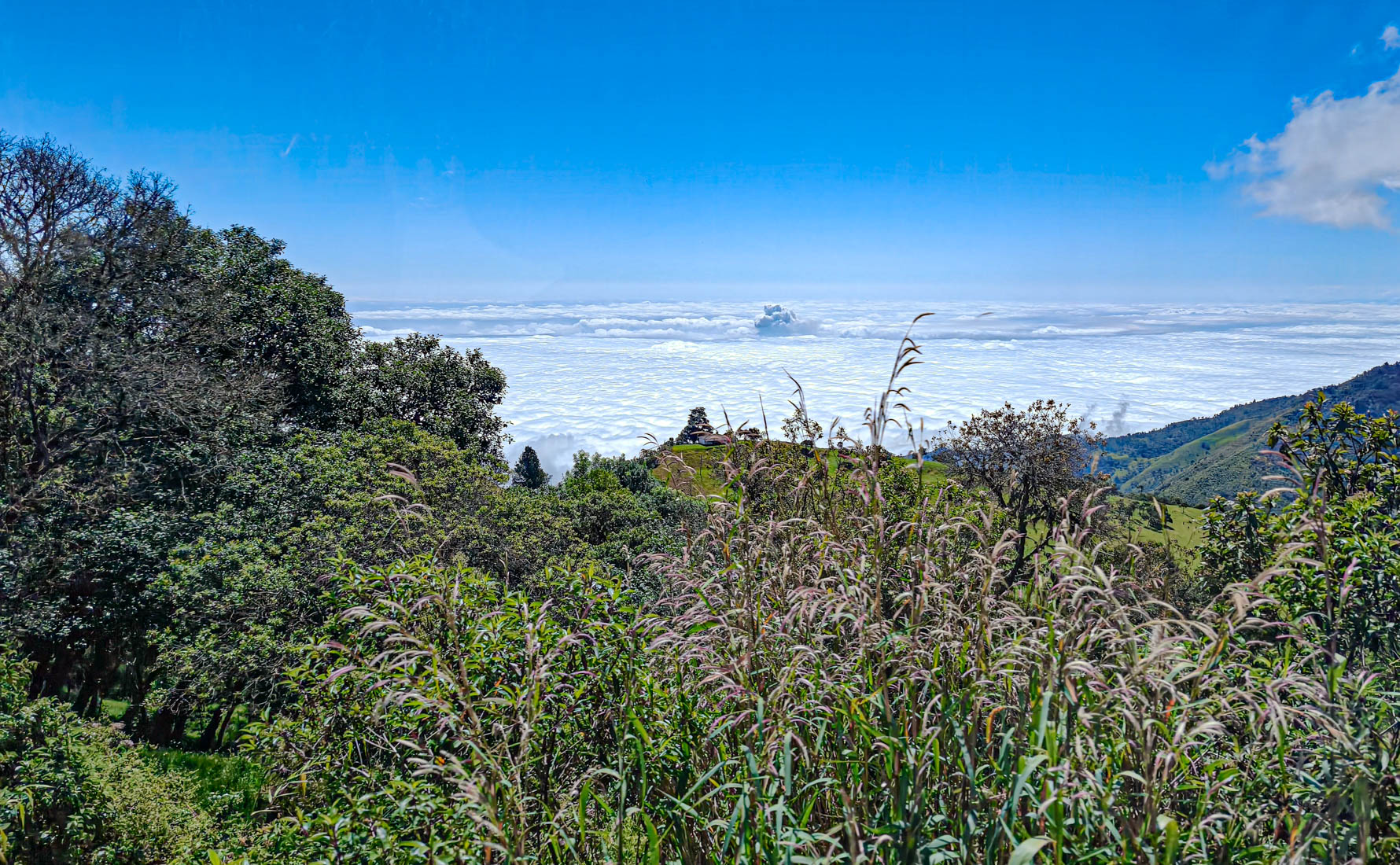 iets bijzonders : het dal is overdekt met wolken. We rijden boven de wolken