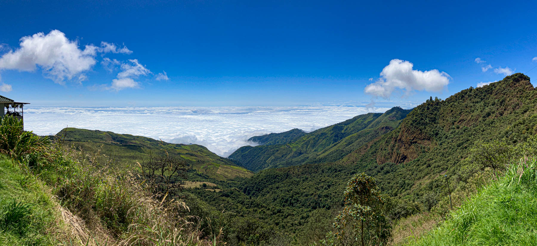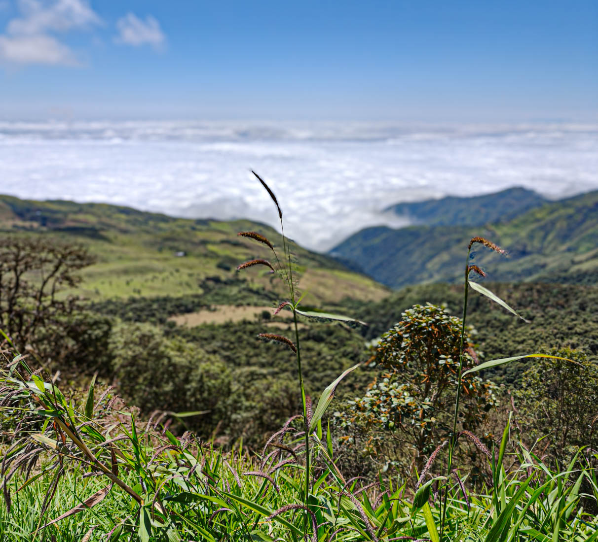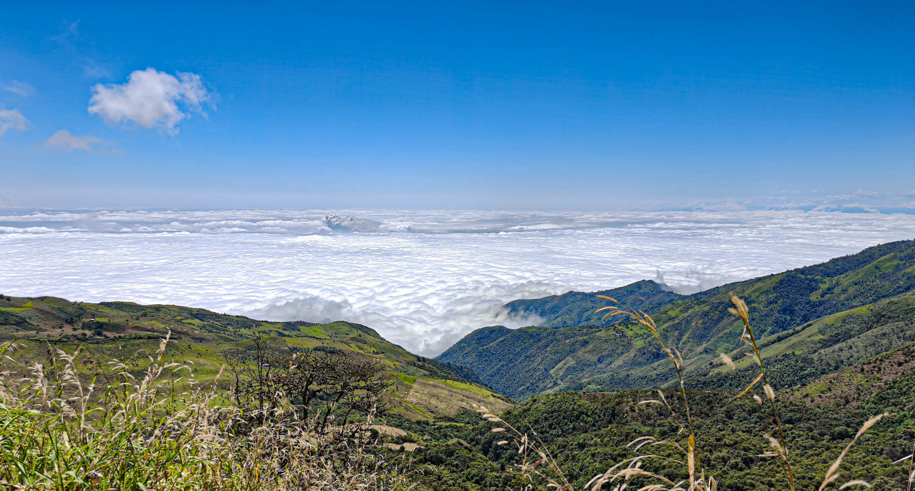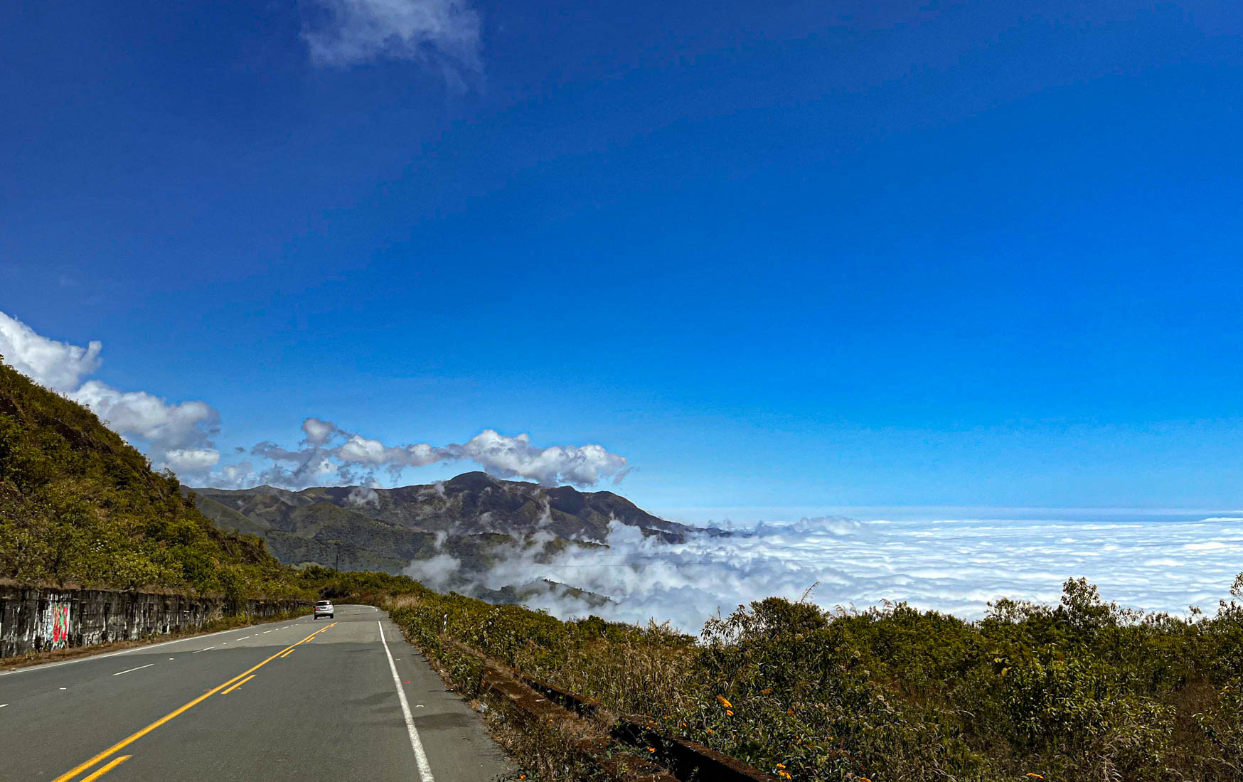 iets bijzonders : het dal is overdekt met wolken. We rijden boven de wolken