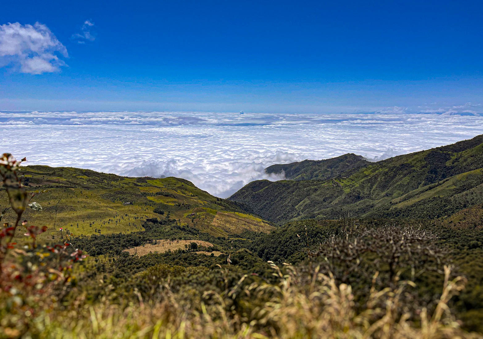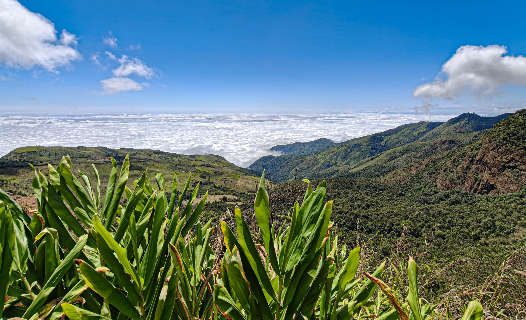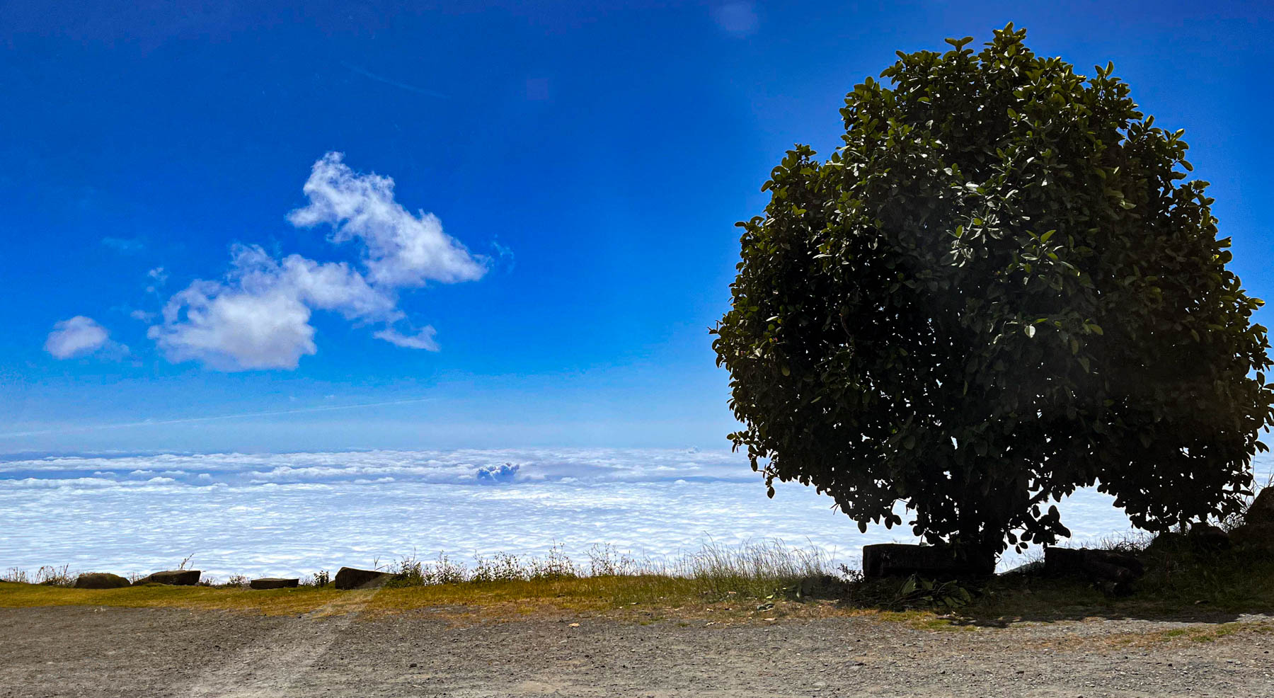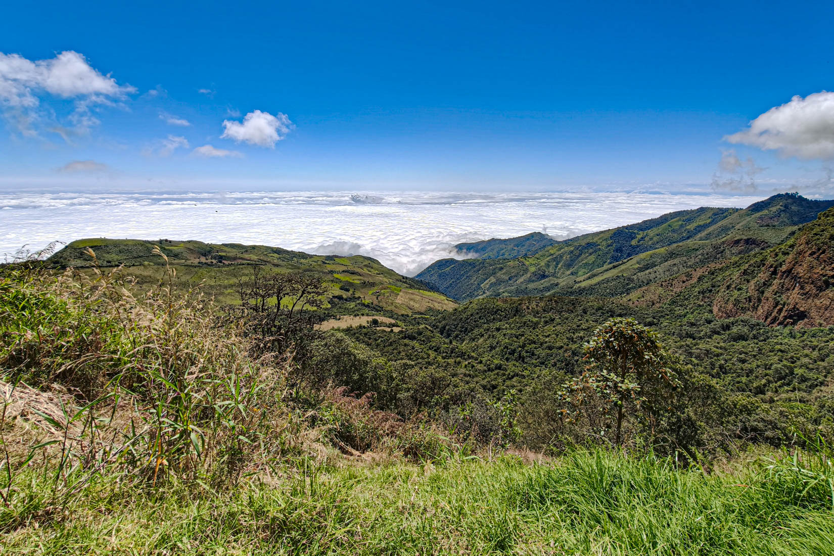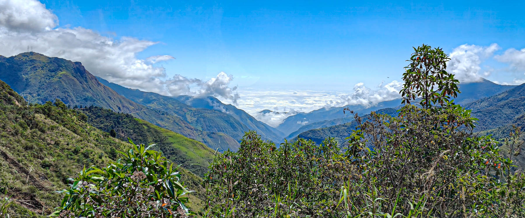 iets bijzonders : het dal is overdekt met wolken. We rijden boven de wolken