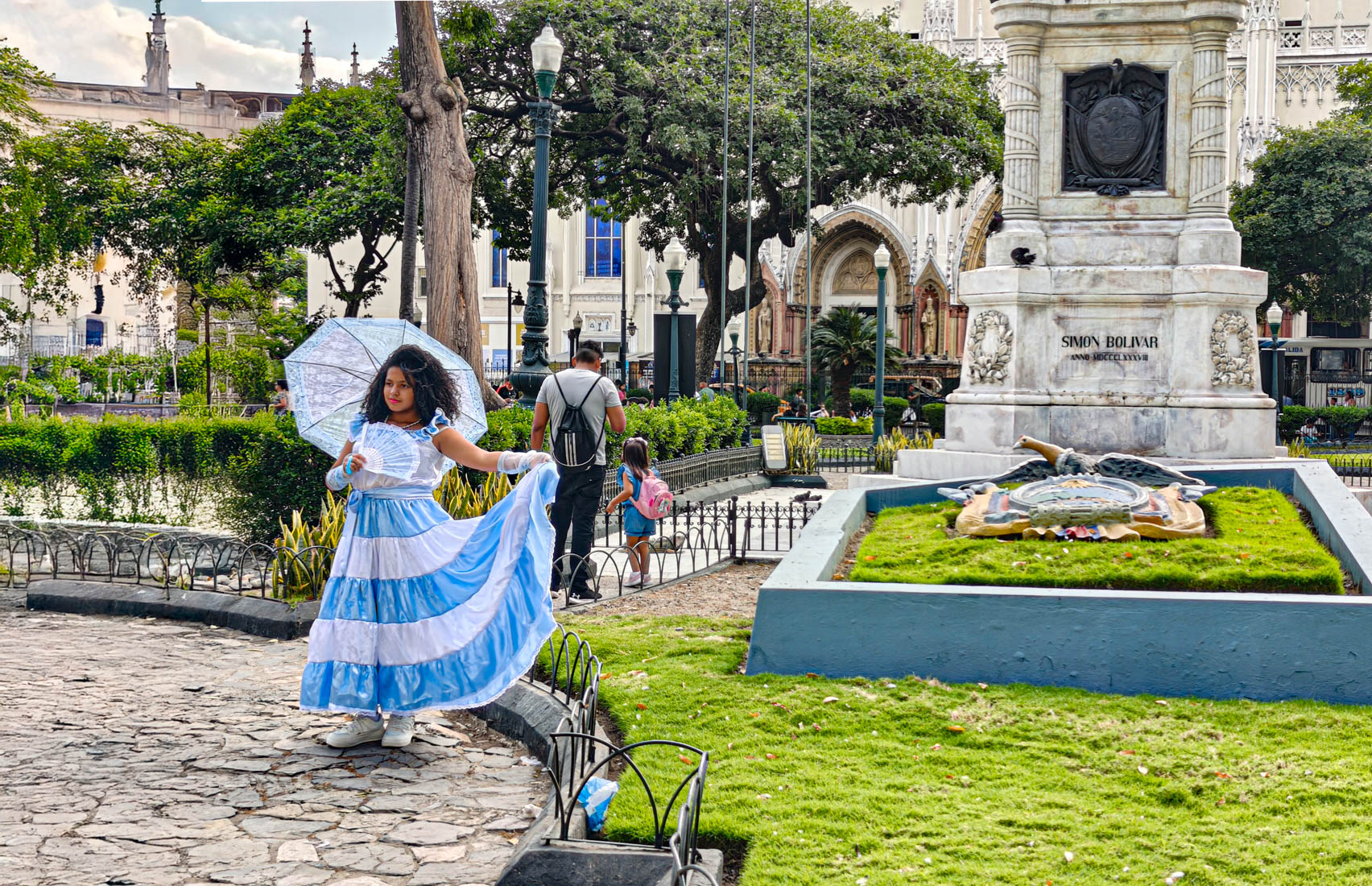 Simon Bolivar. Karin vertelt ons welke buurt van de stad veilig is (alleen