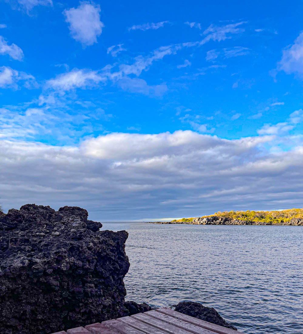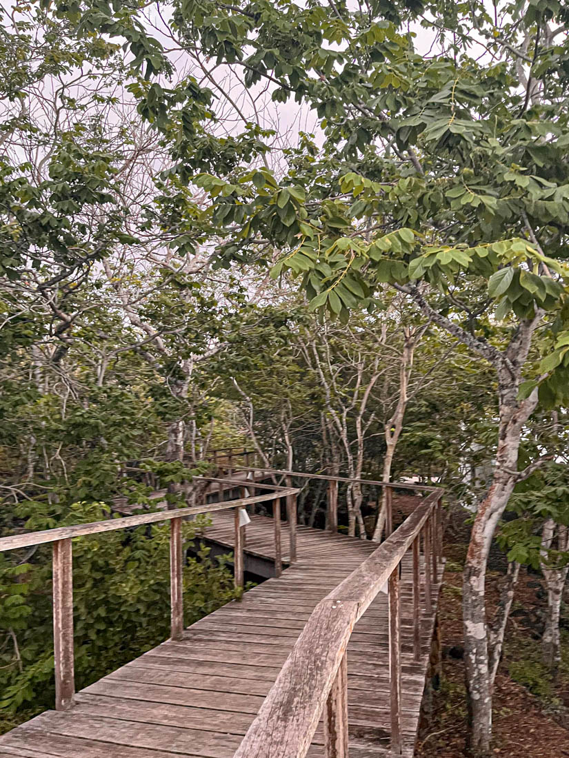 We komen uit bij een interpretation center waar Kamila eigenlijk een rondleiding moet geven over het ontstaan van de eilanden maar in plaats daarvan lopen we door een natuurgebied waar men naar verluidt veel fregatvogels kan zien.