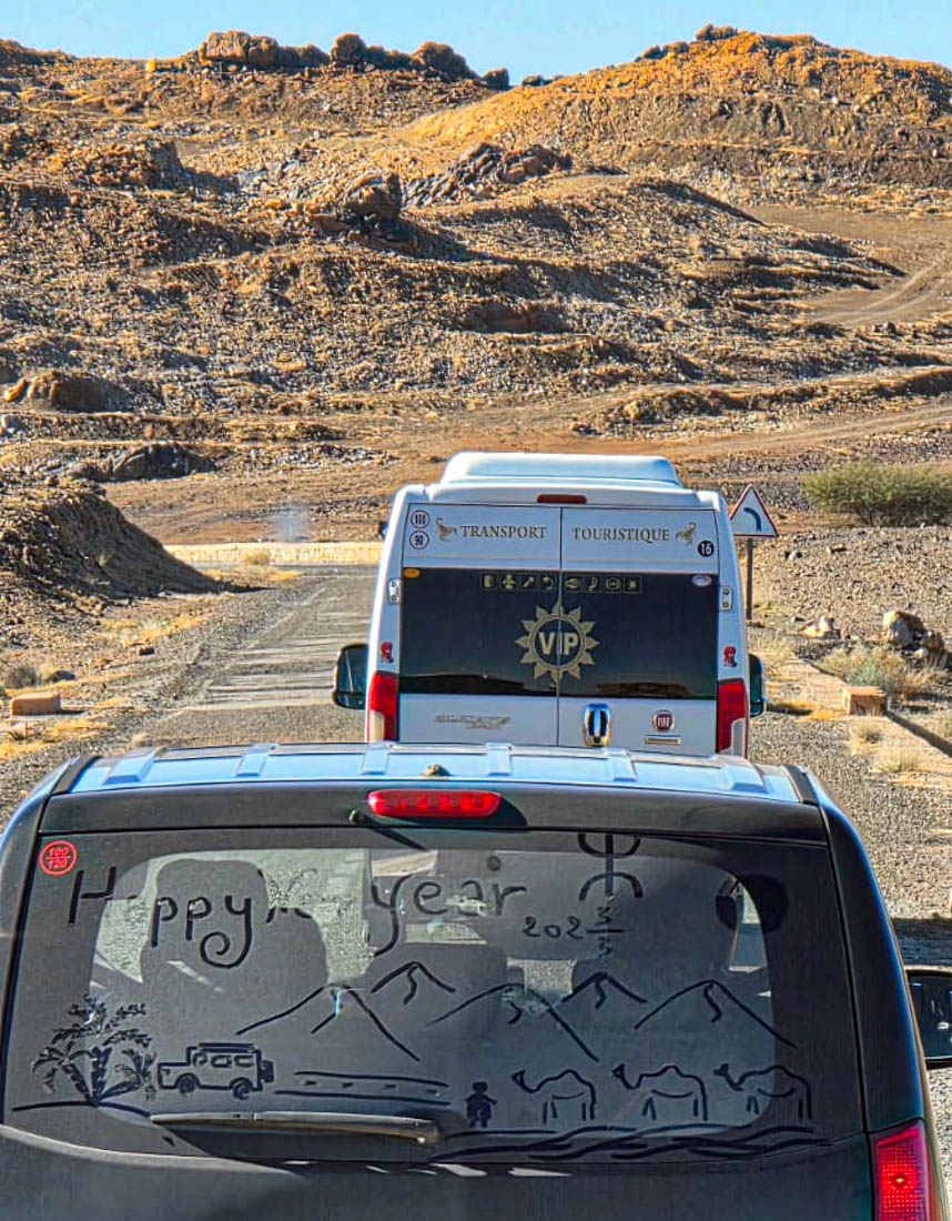 Monkey Fingers Canyon | Kasbah Ait Arbi | Dades Gorge | Avond in de Dades kloof | N10 naar Merzouga | Merzouga | Merzouga jeepsafari | Jaarwisseling | Rissani | Todgha kloof | Tiz n Tichkapas | Marrakech