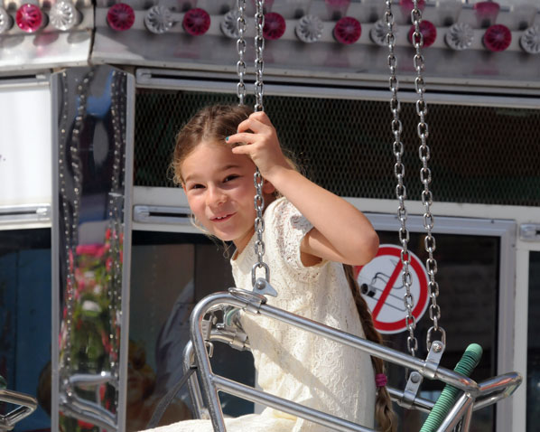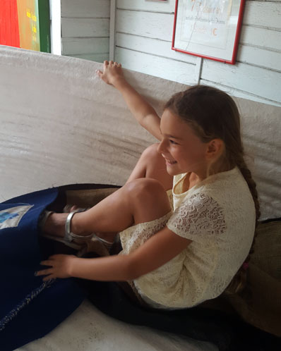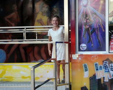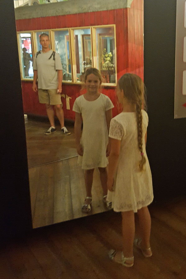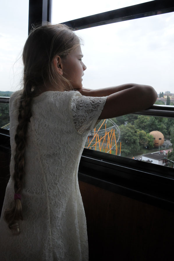 Je vindt onze jeugdige reizigster al vroeg op pad langs enkele vreemde bouwsels....