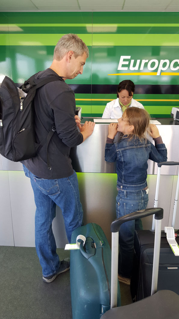 luchtzakken, staan we aan de grond in Madrid. Onze auto staat al klaar