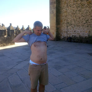 Teruggekomen bij onze auto ontdekken we tot onze verrassing dat we een parkeerboete hebben. Blijkbaar hadden we niet langer dan een uur mogen parkeren. Een hulpvaardige Spanjaard legt uit dat we mits betaling van 3 euro aan een boete van 60 euro kunnen ontsnappen. Opgelucht grijpen we die kans ! | |