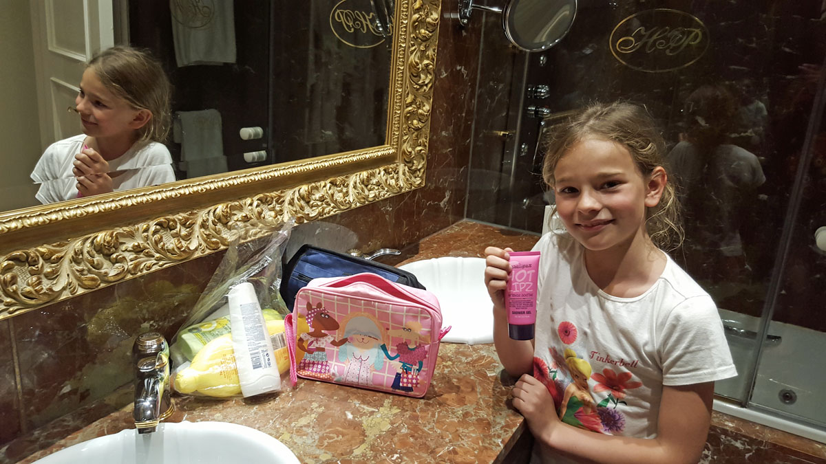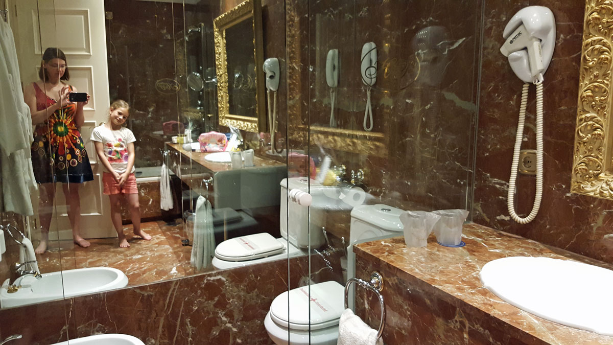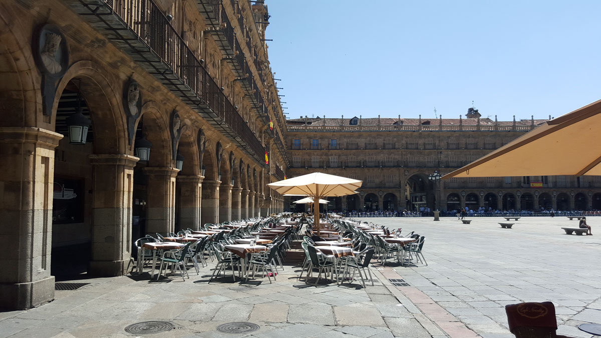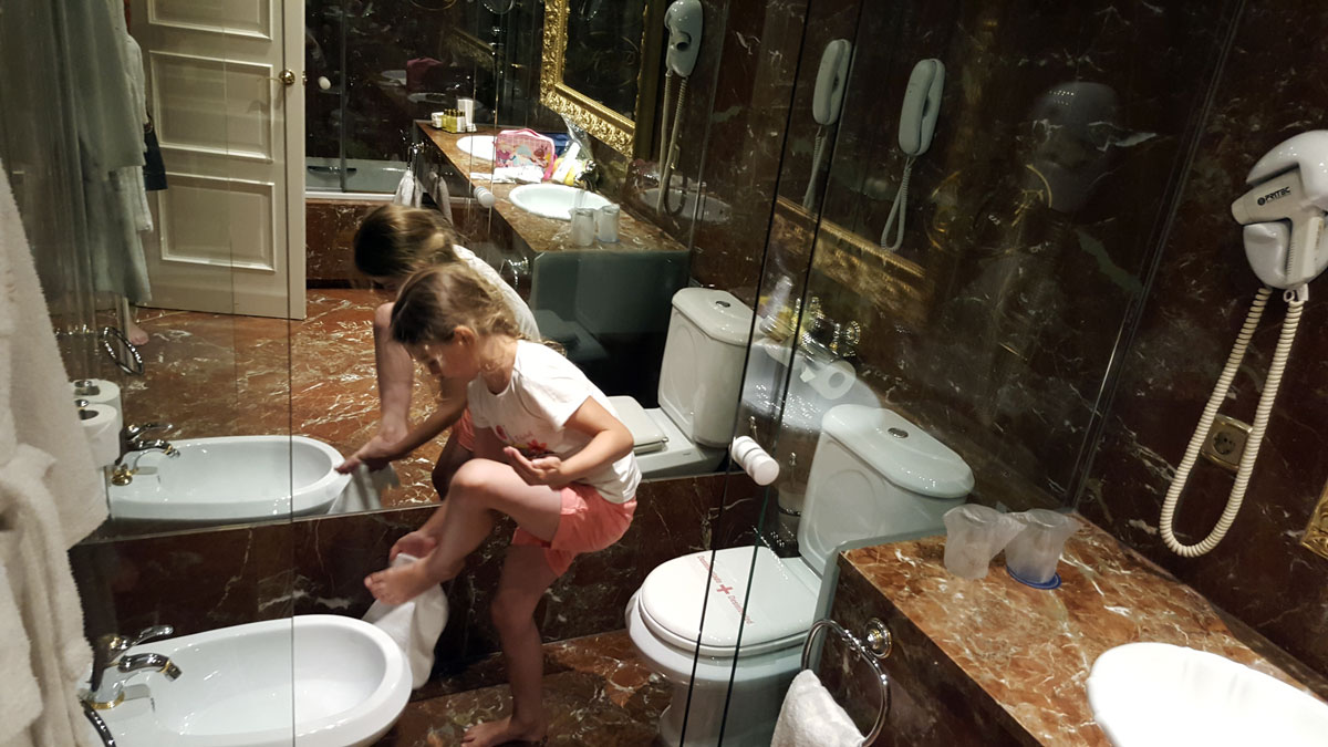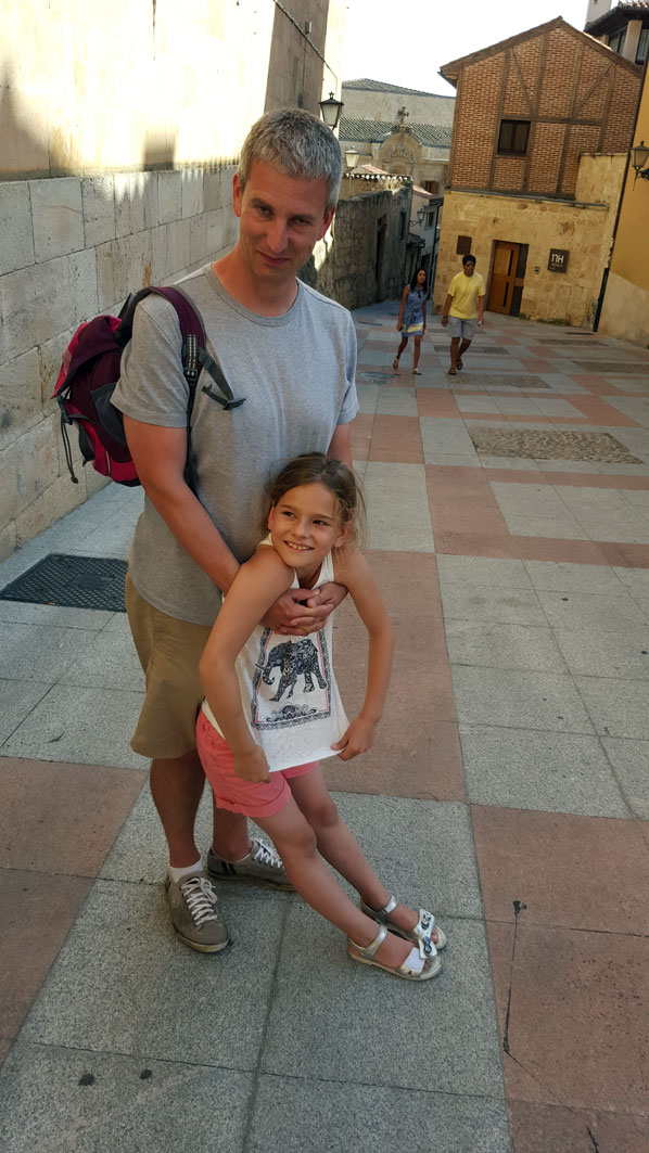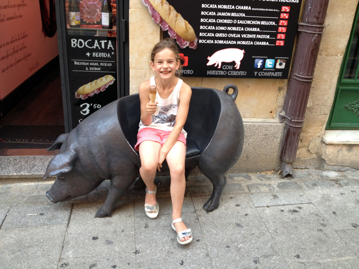 Tegen de avond komen we aan in Salamanca. Het hotel wordt al meteen positief beoordeeld door Julia. Na een uitgebreide fotosessie in de badkamer gaan we de wondermooie stad verkennen.