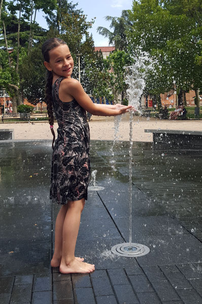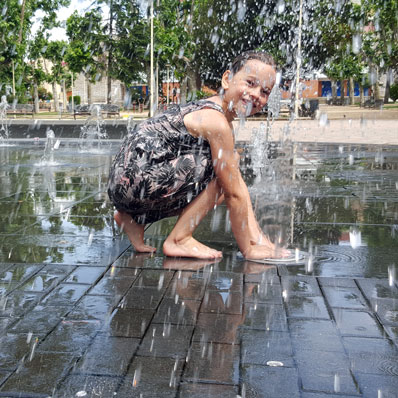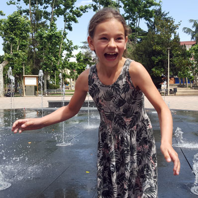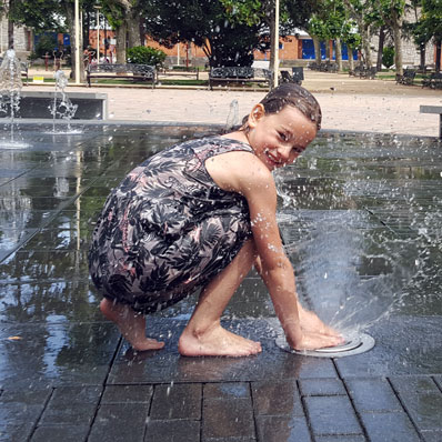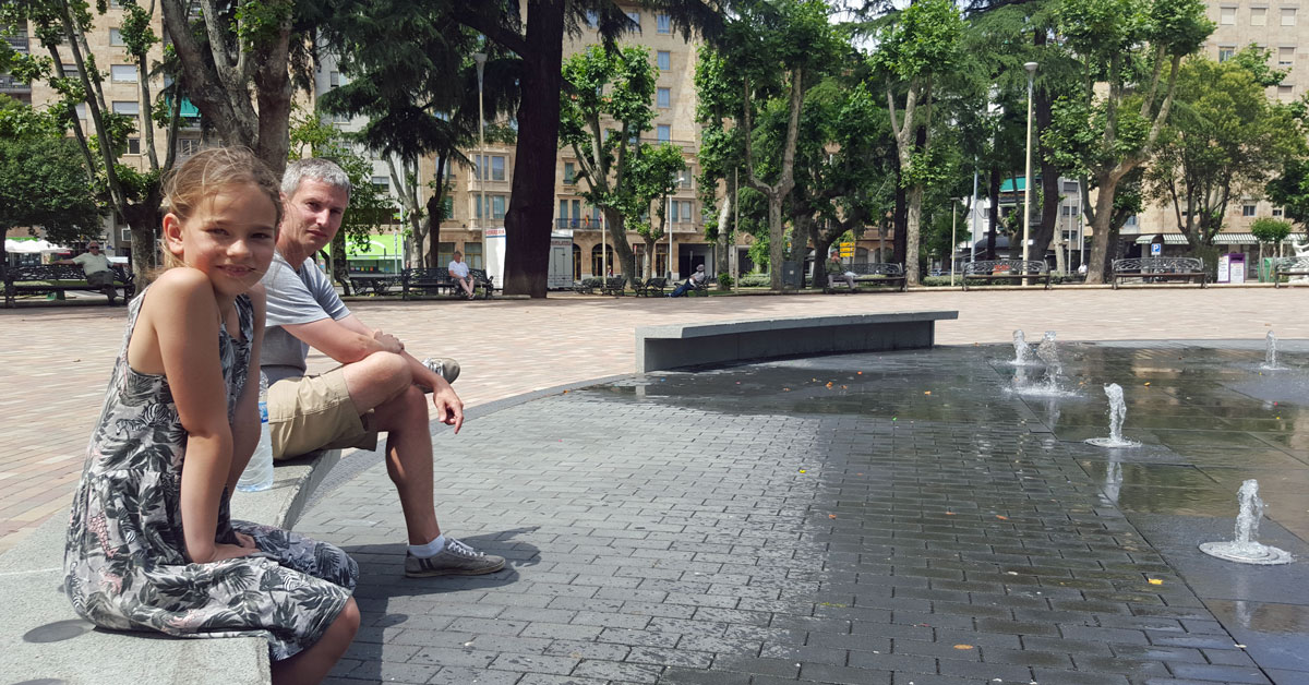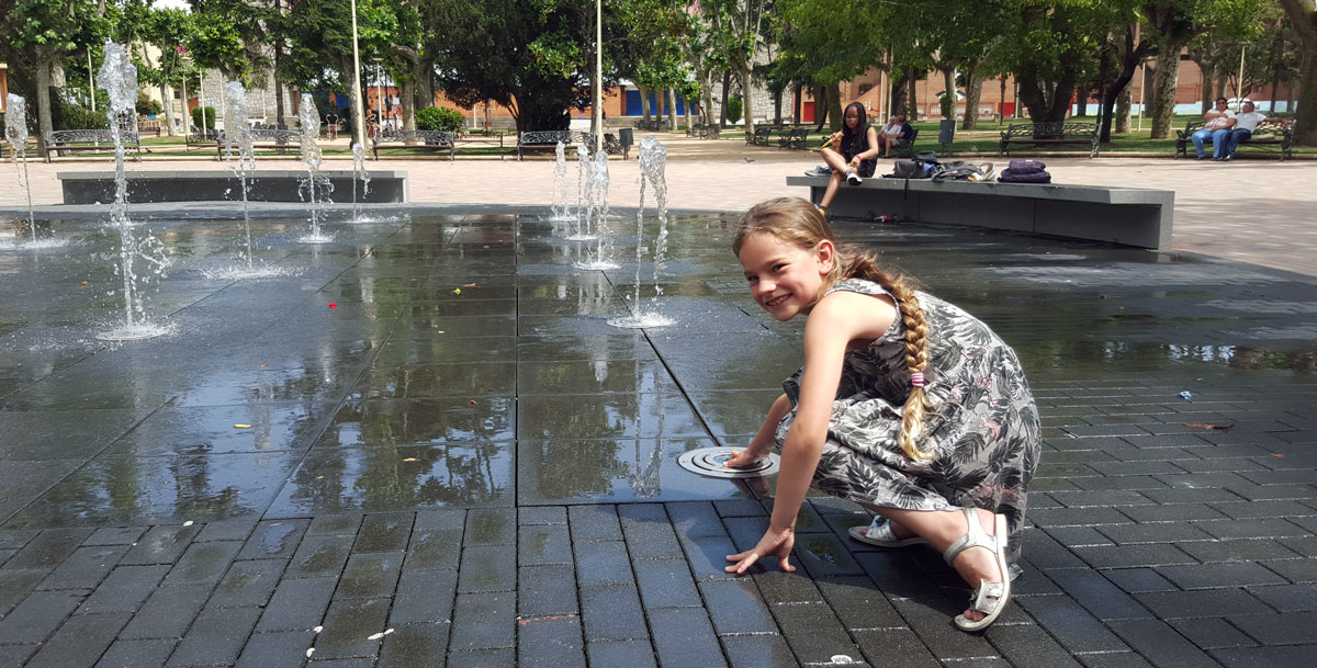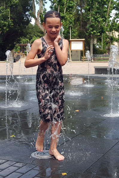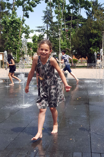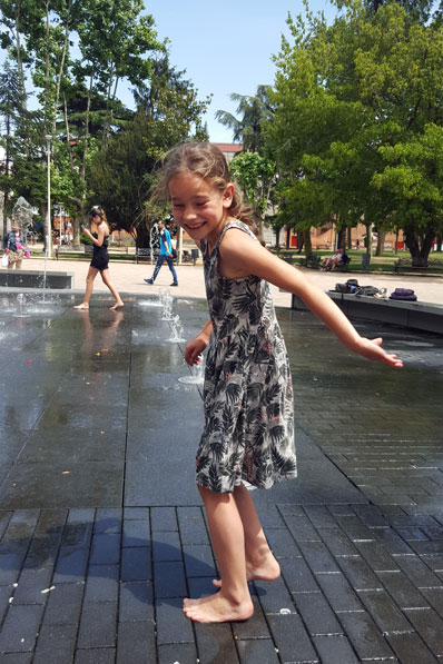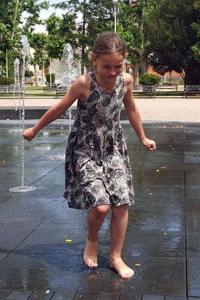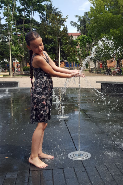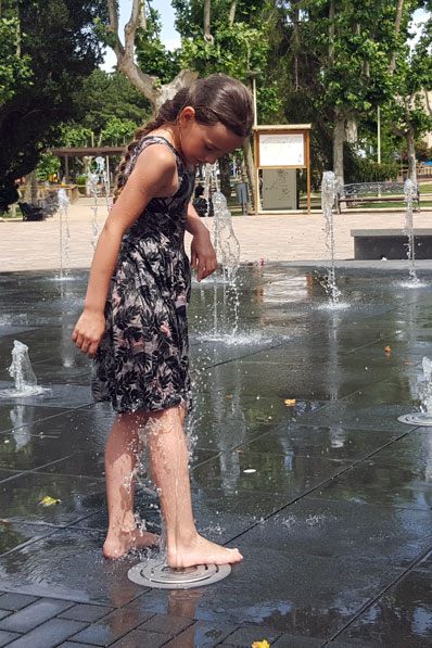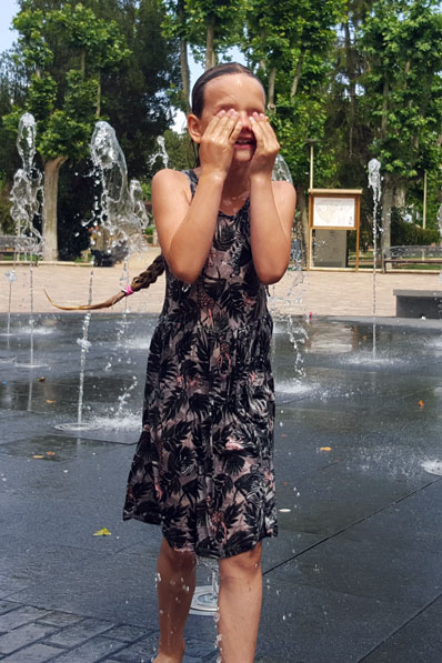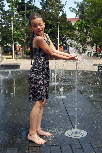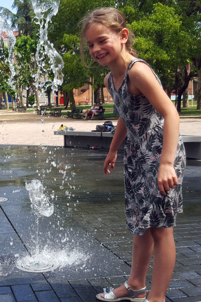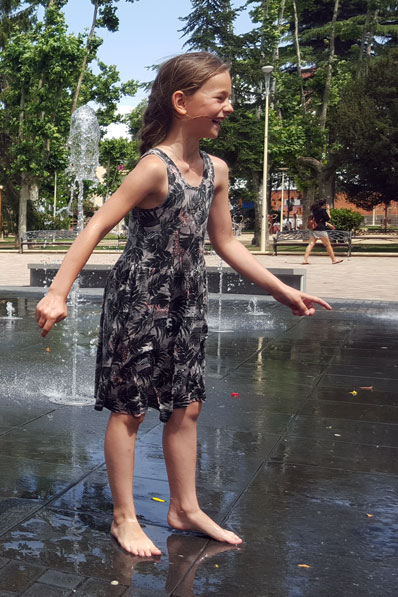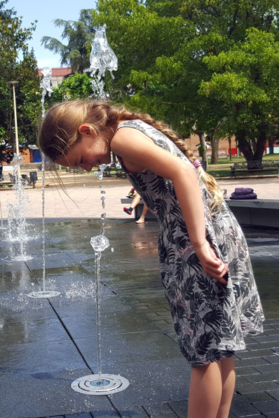 Bijna bij het hotel... maar de fonteinen zien er zo aanlokkelijk uit...