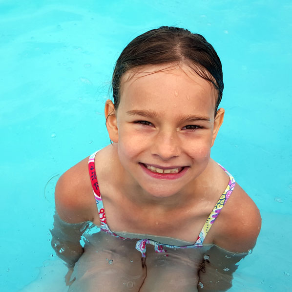 Later in het hotel... het is nog steeds zo heet dat twee van ons beslissen het zwembad uit te proberen...